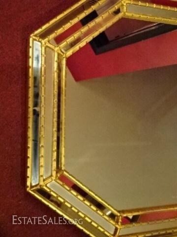 LOT 72B: OCTAGONAL GILT WOOD MIRROR WITH MIRRORED FRAME
