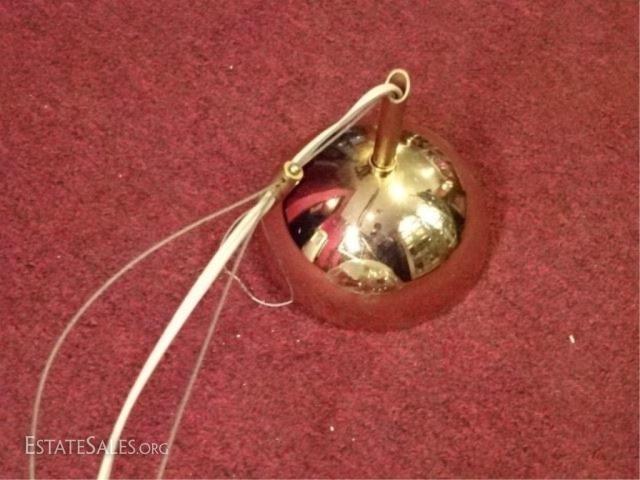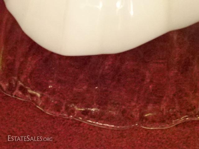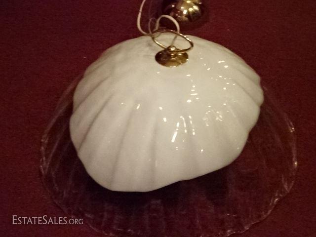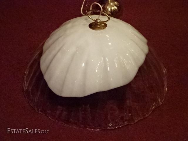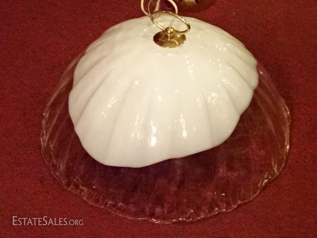 LOT 72C: MAZZEGA MURANO GLASS PENDANT LIGHT, WHITE AND CLEAR GLASS DOME SHADE, BRASS BASE, VERY GOOD VINTAGE CONDITION, 20"W X 10"H, SKU292.08 H300