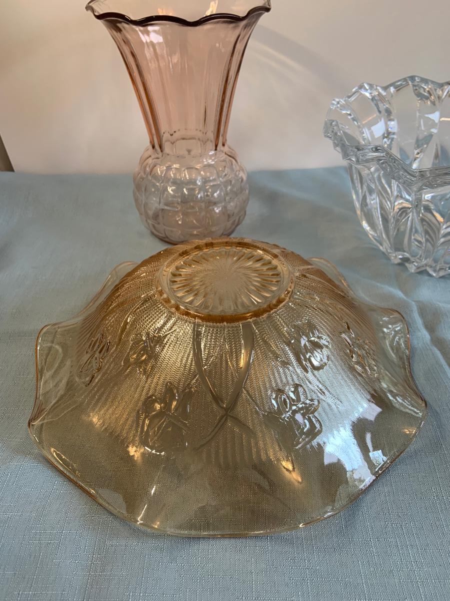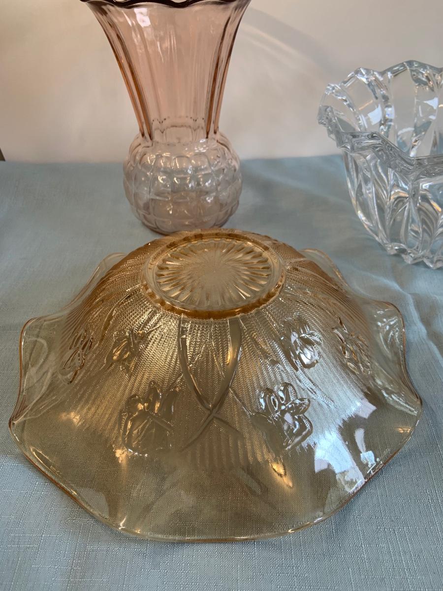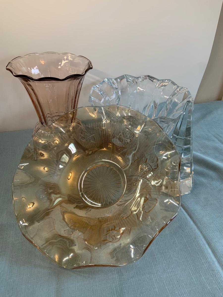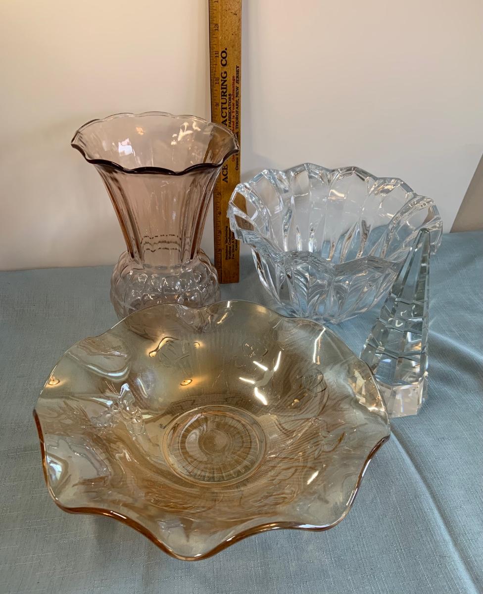 Lot 72G: Cut and Etched Glass Bowls, Glass Vase and Crystal Tree