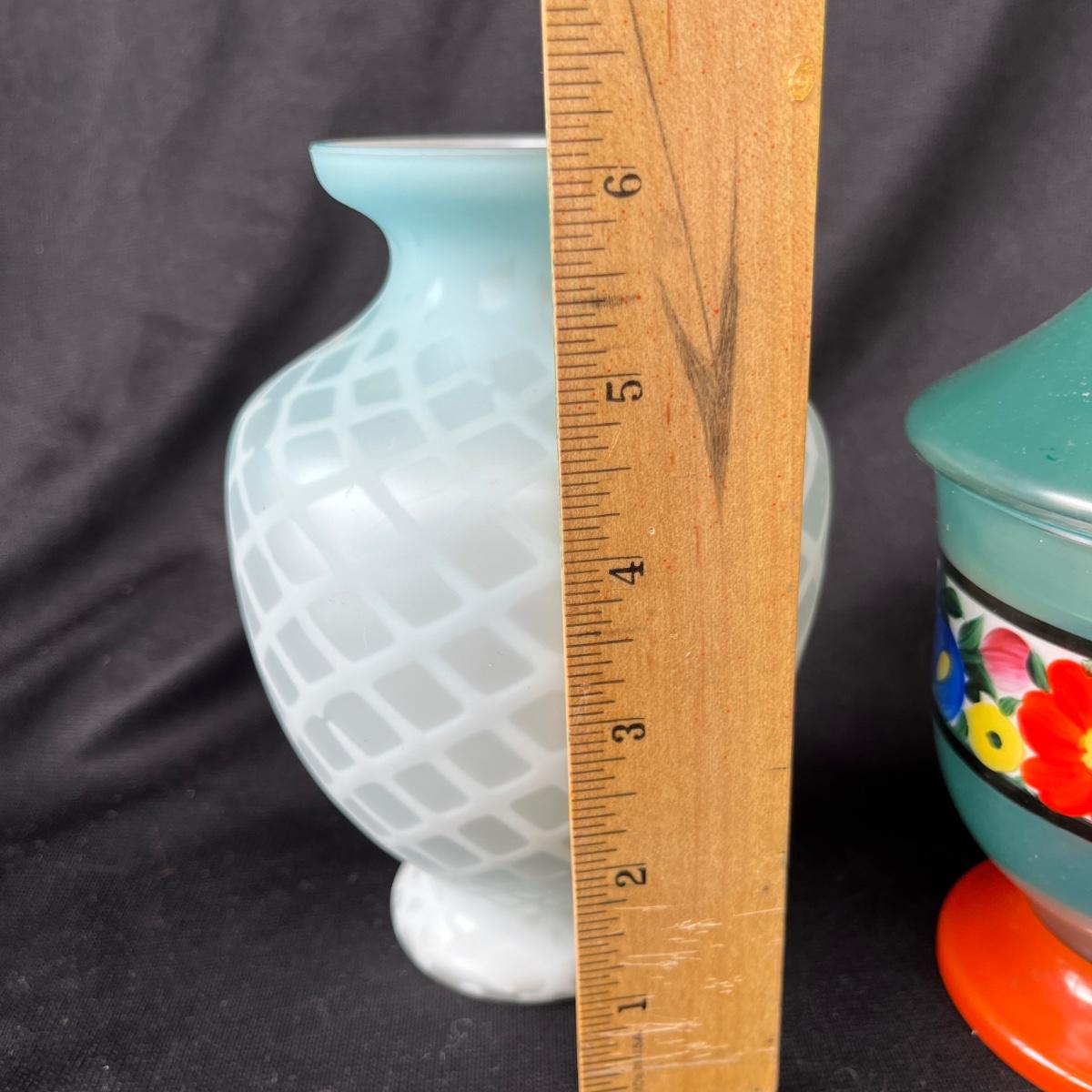 Diamond Quilted English vase, does have a manufacturer flaw. See picture. The other is Czech! No damage.