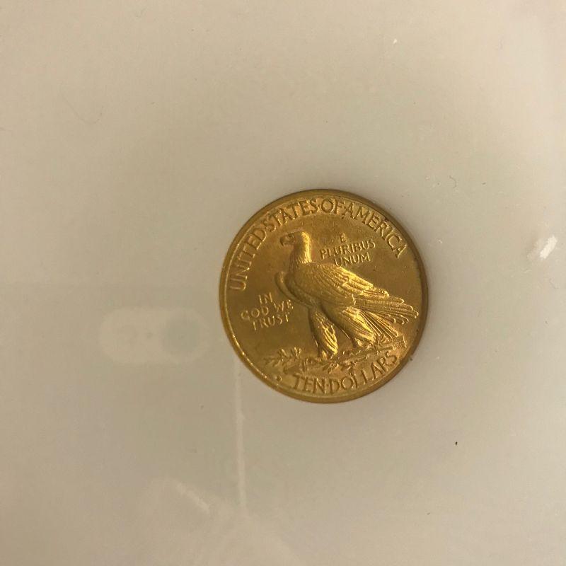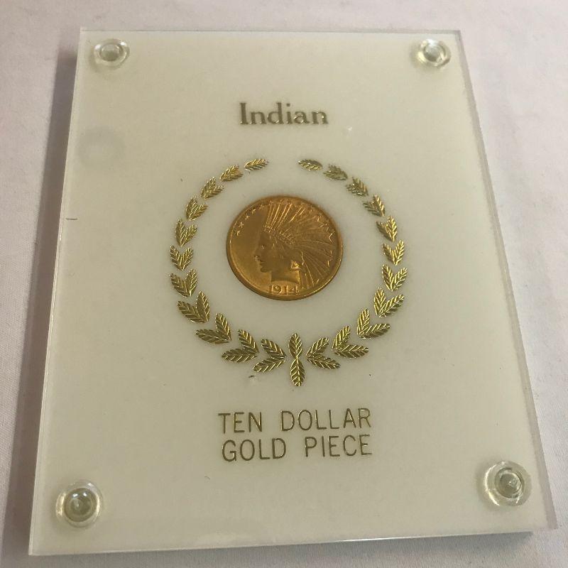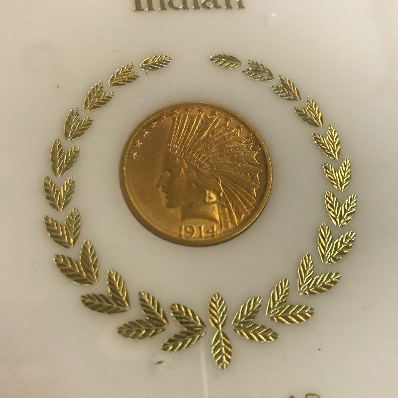 1914-D $10 Indian Gold coin in Capital Plastic Cover. Uncirculated
