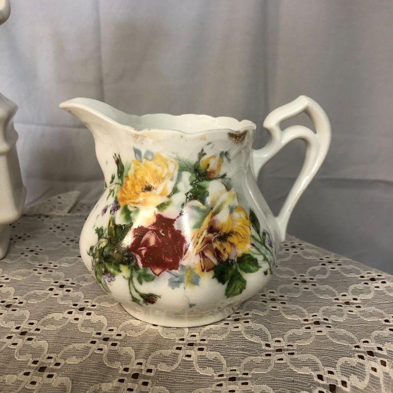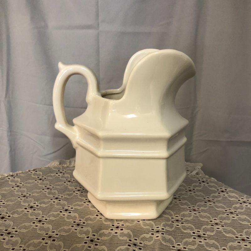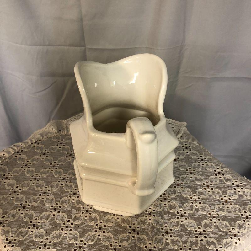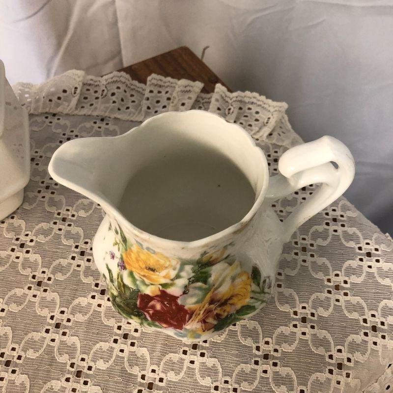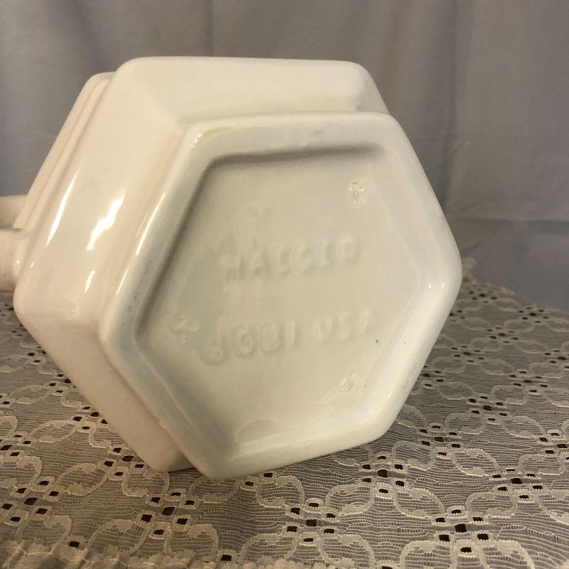 The brown and white one is made in Hungary and stands about 7.25" tall. The only issue is some paint chipping along the rim as seen in the pictures. The small pitcher has some paint wear and is unmarked. It stands about 4.25" tall. The white pitcher is by Haeger and in excellent condition. It stands 7" tall.