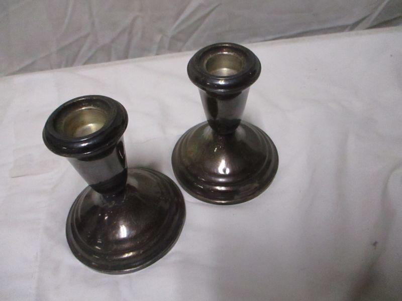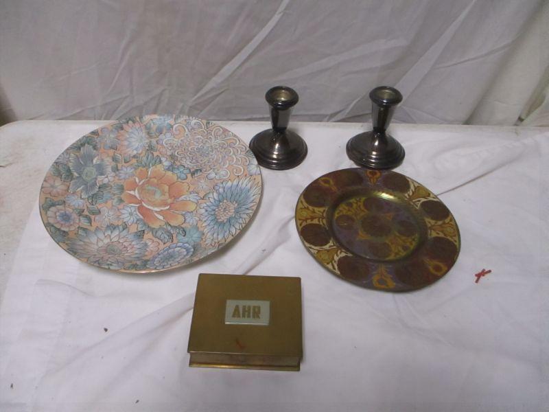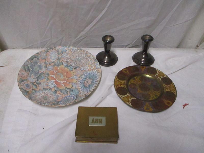 Lot 73 - Decorative Plates - Sterling Weighted Candle Holders - Trinket Box