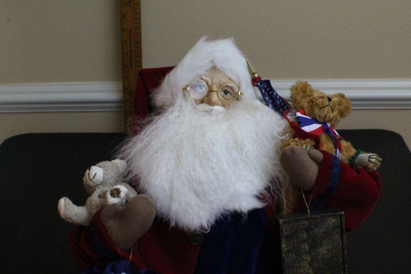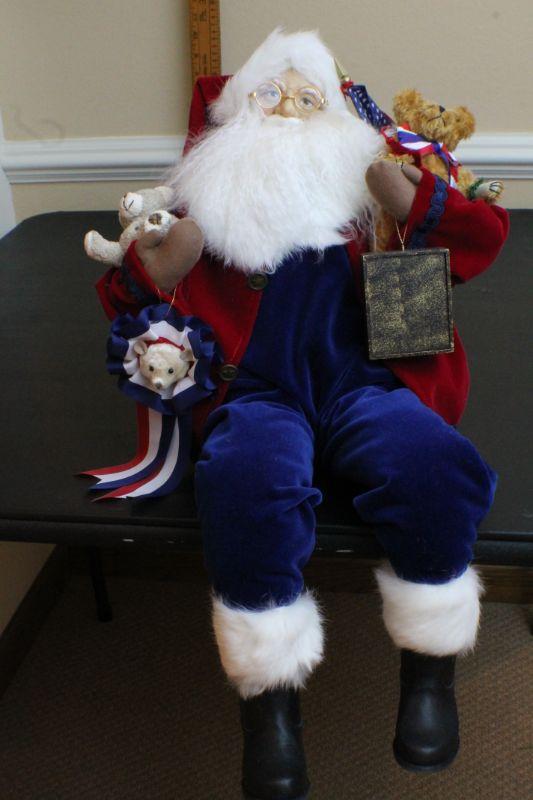 LOT #73: Vintage Large Lynn Hadley Collectionâ„¢ Sitting Santa Claus w/ Blue Velvet Pants