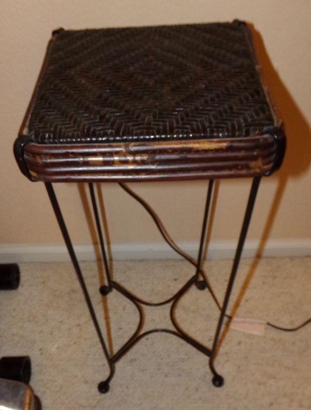 METAL AND WOODEN PLANT STAND HAS A FEW DINGS/PAINT LOSS