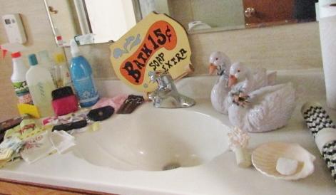 VINTAGE HANKIES, BATH SIGN, CERAMIC SWANS, MASSAGER, VINTAGE COIN PURSE, NAIL GROOMING KIT AND MORE
