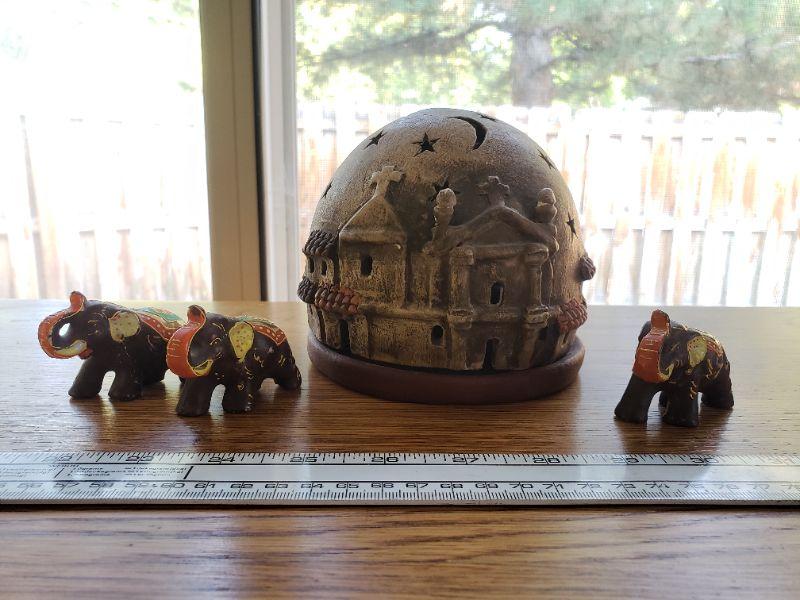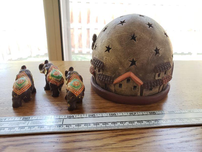 Lot 73: Vintage Candle Dome & 3 Elephants