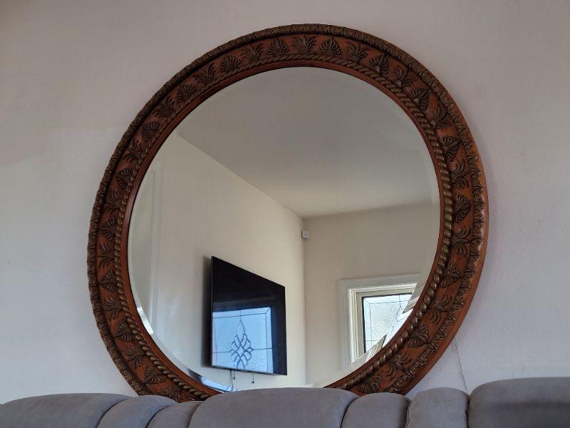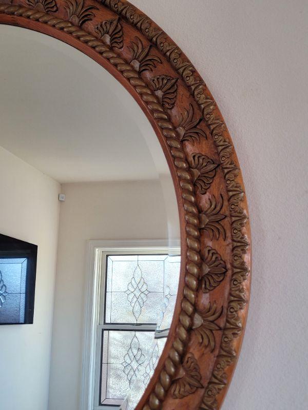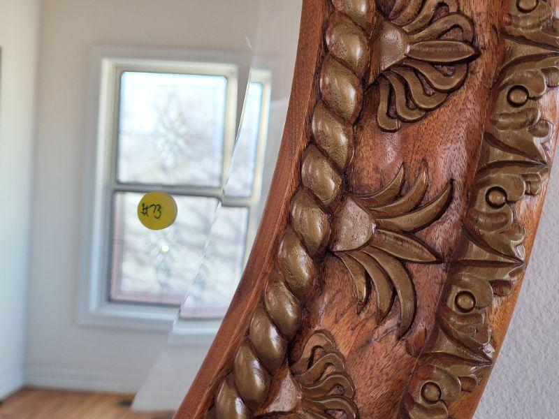Lot #73: Vintage 4 Foot Wide HAND CARVED Showcase Beveled Glass Mirror