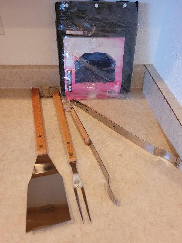Lot 73:  Grill Cover & Grill Utensils
