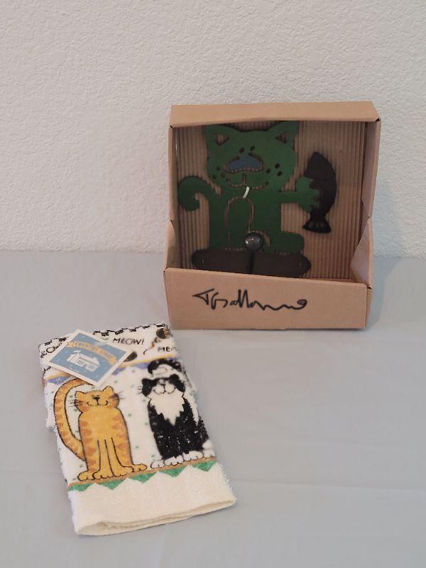 Lot 73: New Tim Gallagher Cat with Hook and Cat Hand Towel