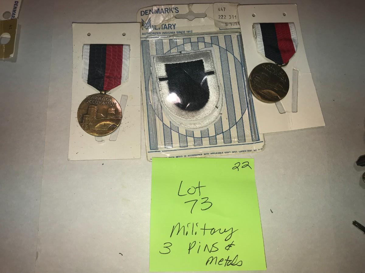 3 Military Items, Patch, Pins, Awards (Lot 73)