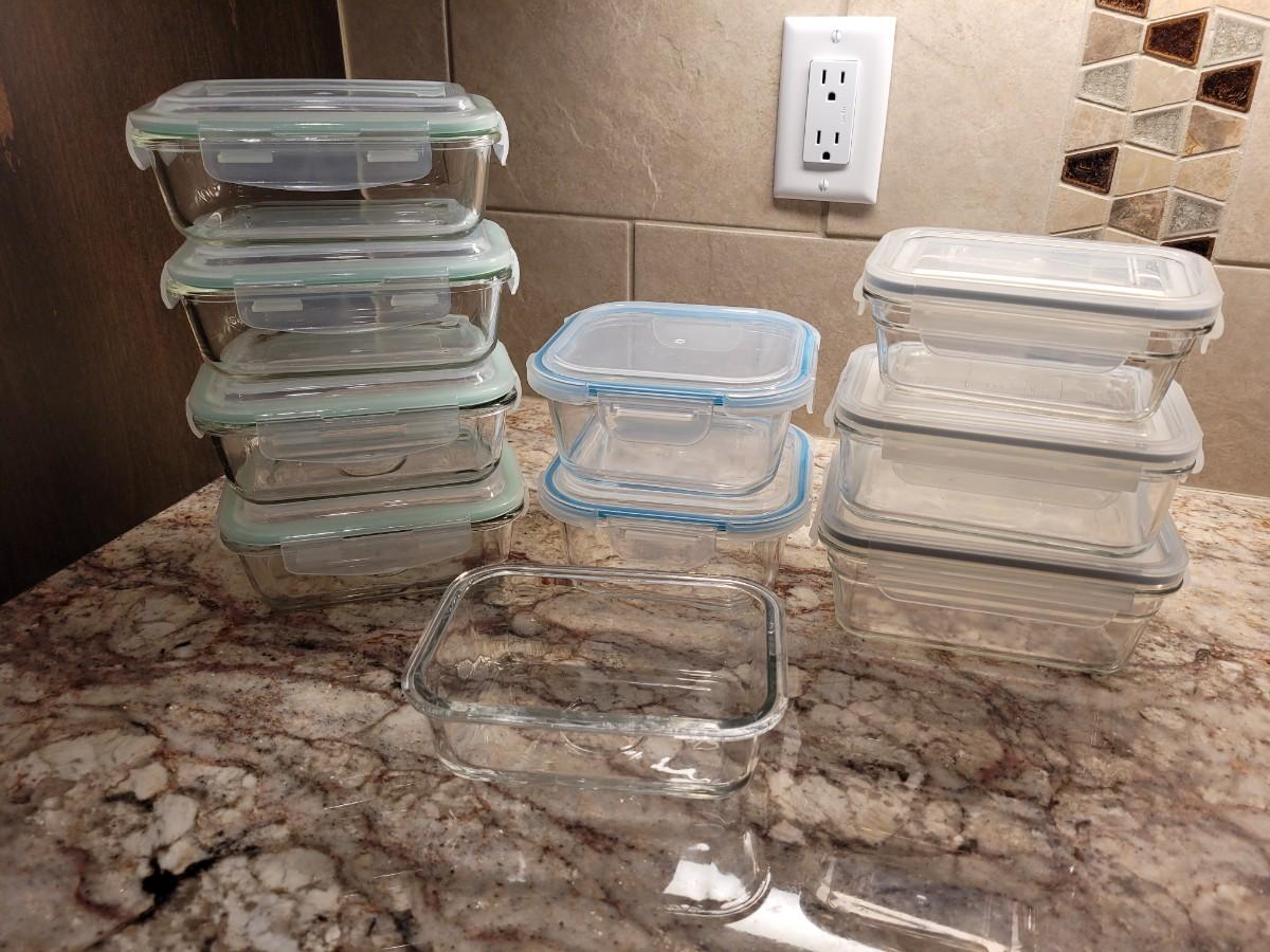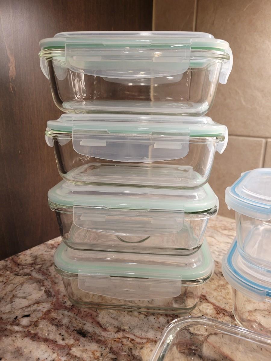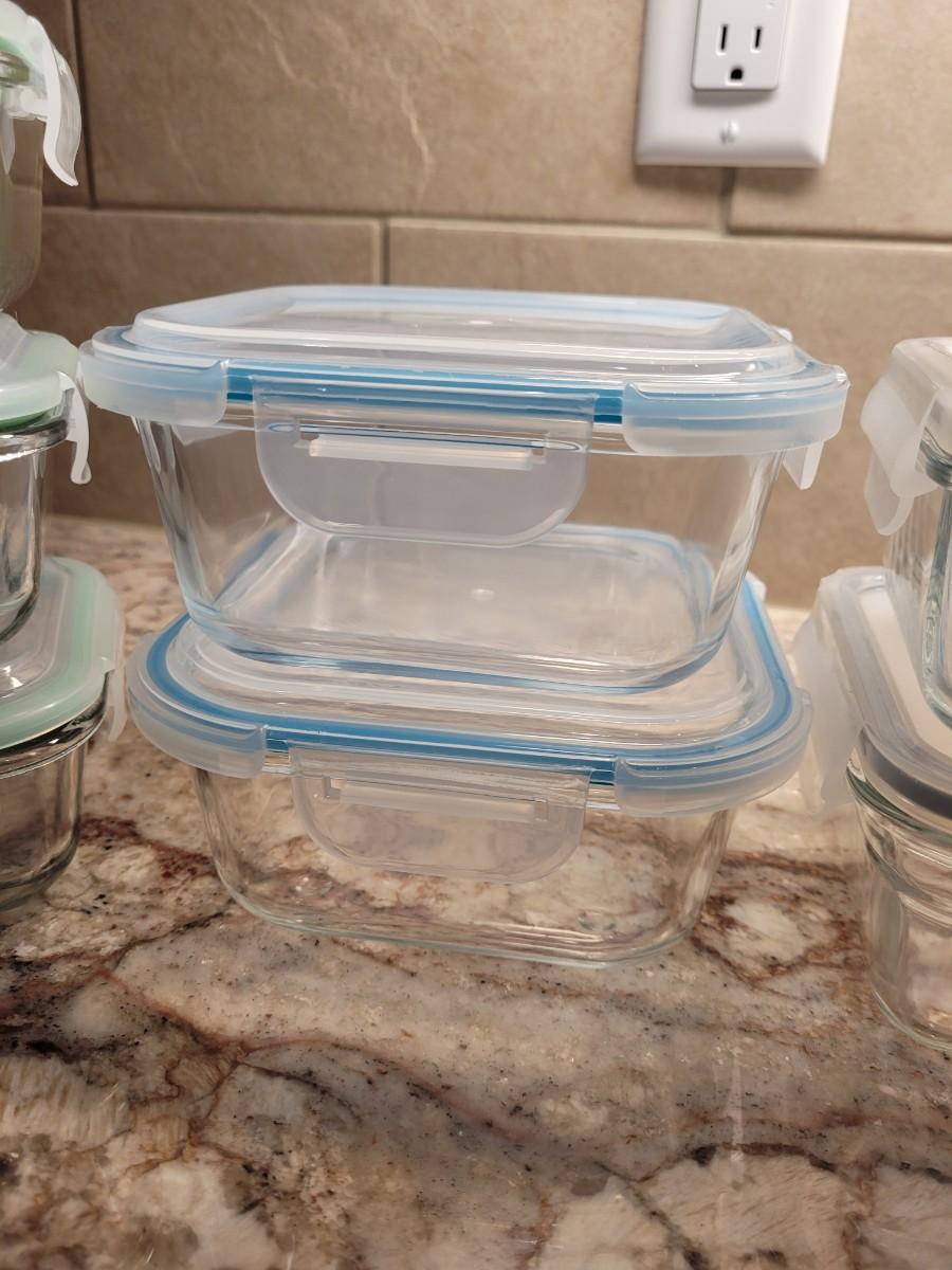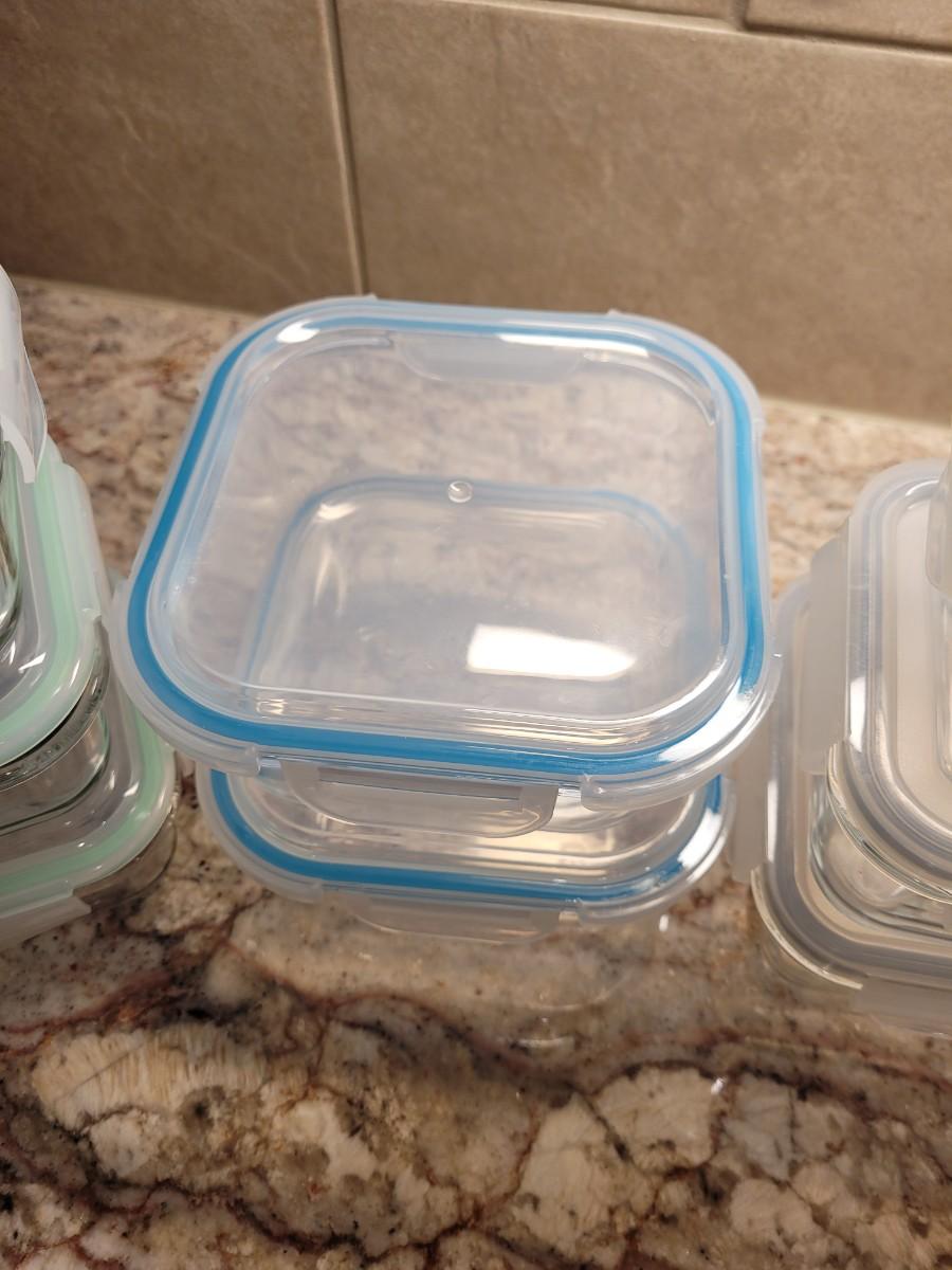 Lot 73: Glasslock/Snaplock Glass Bowls with Lids (Clear, Blue and Seafoam Rim Colors)