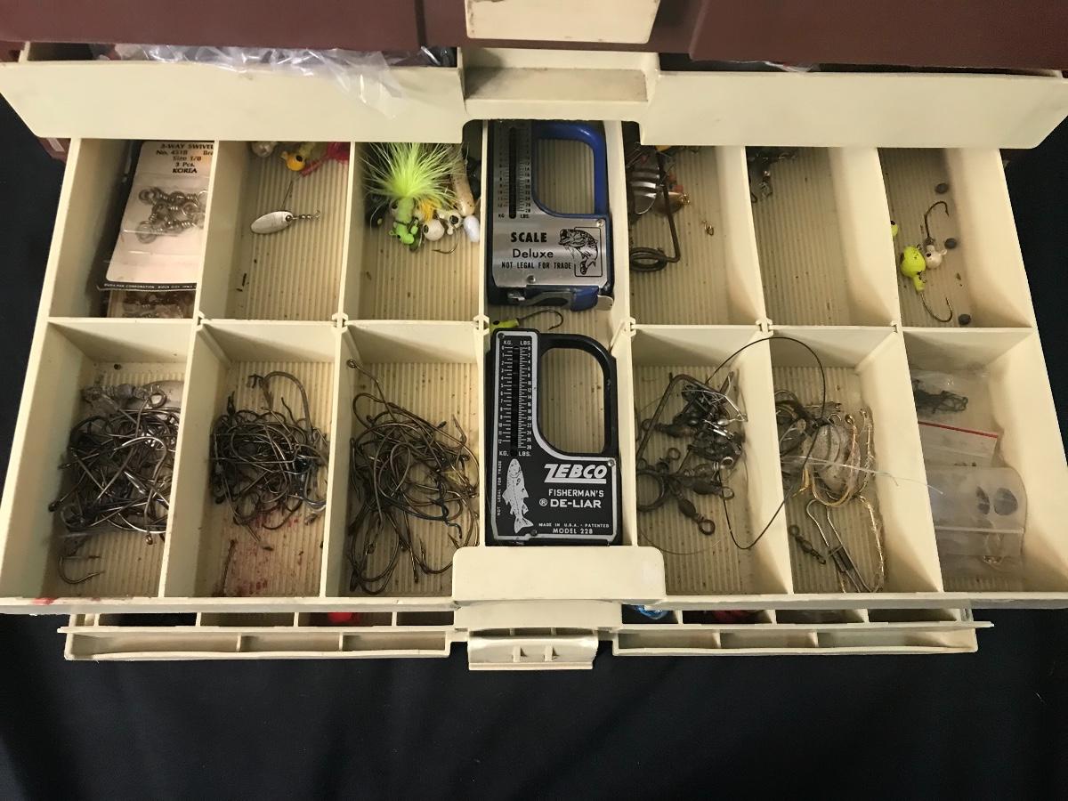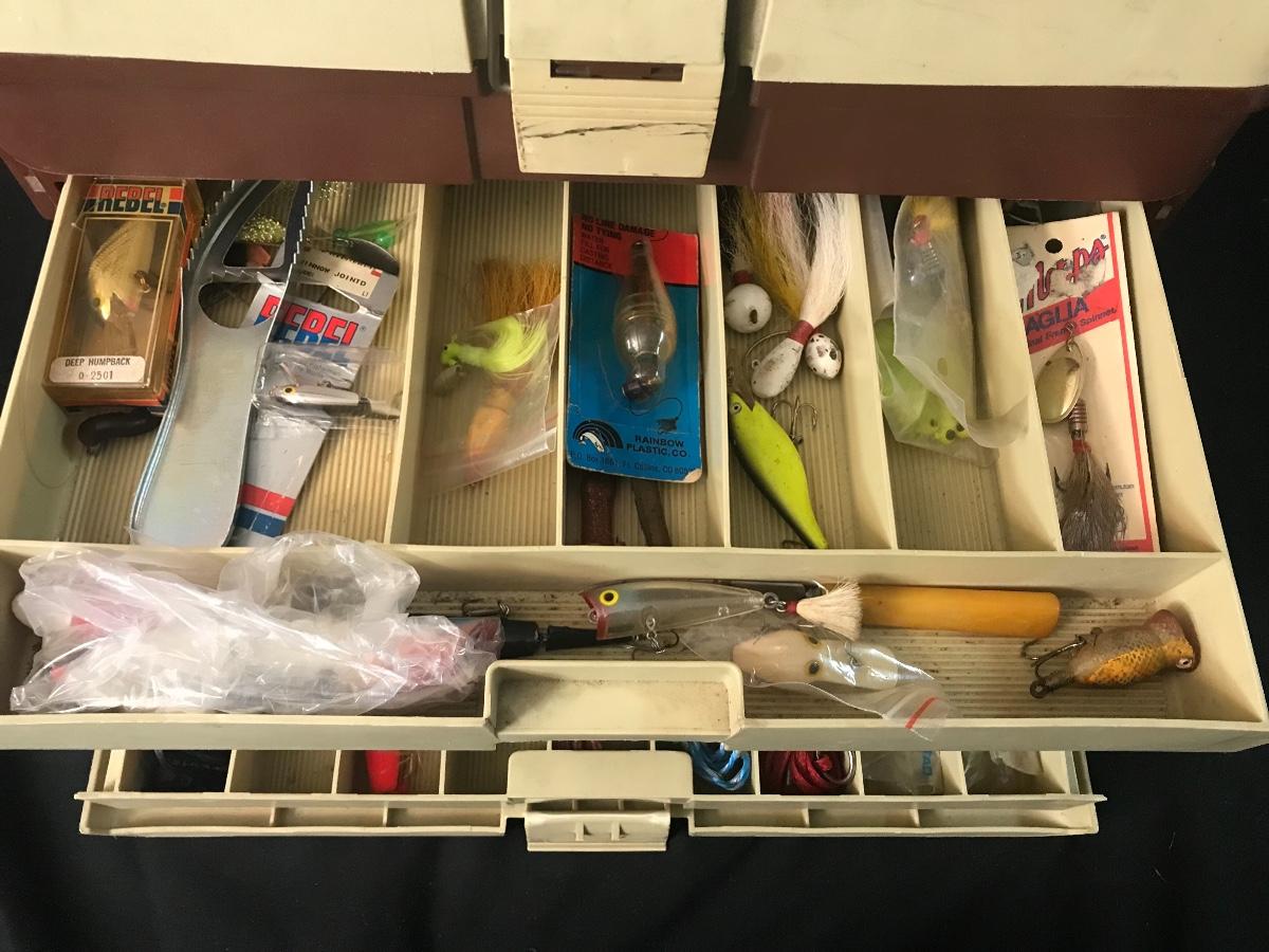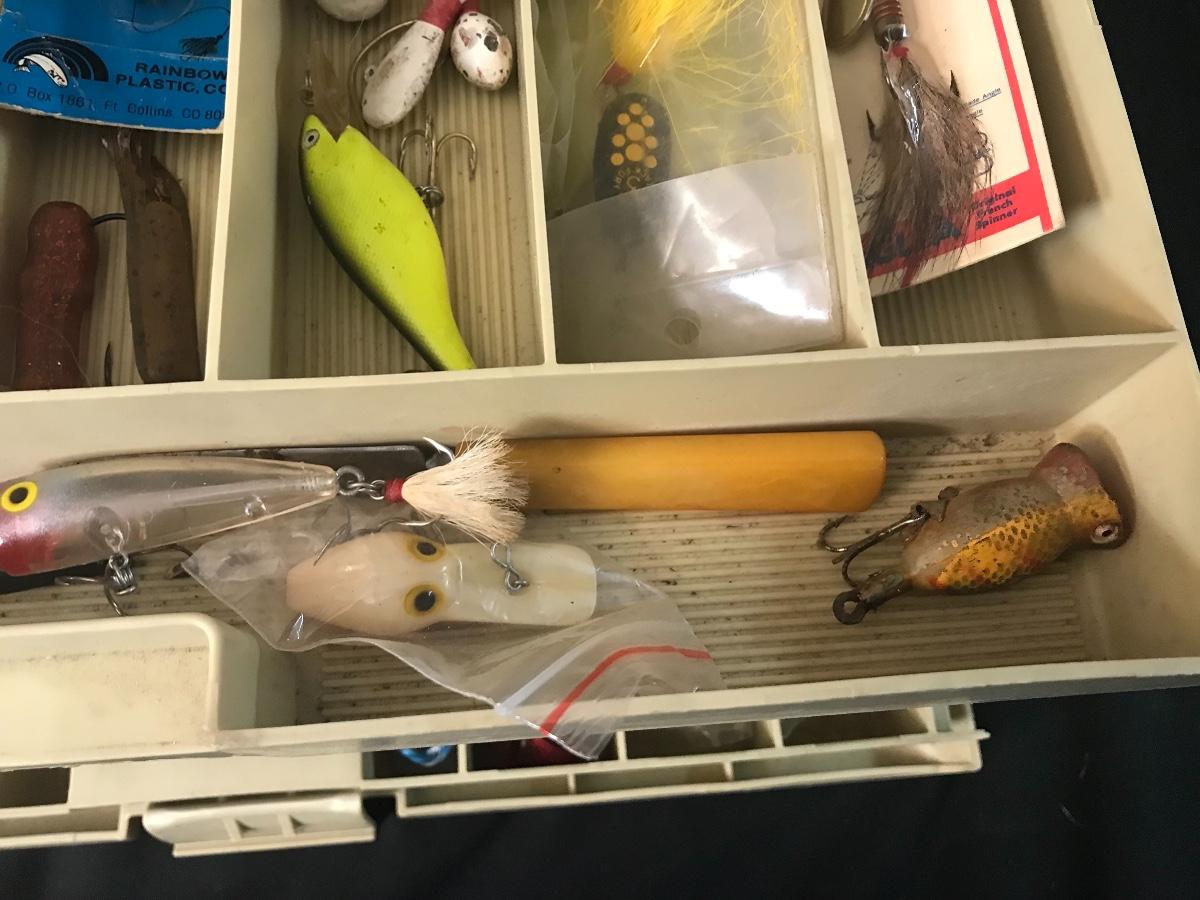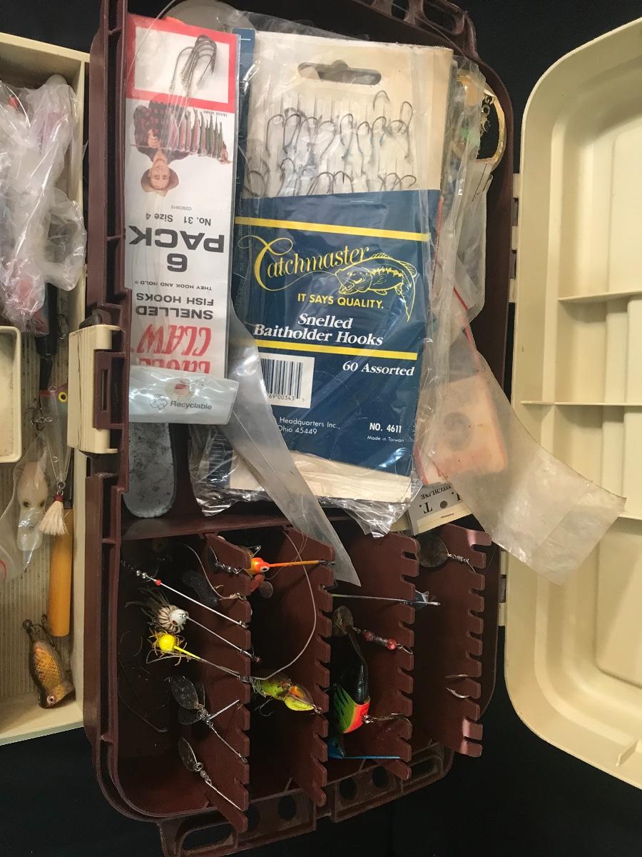 Large Plano Fishing Tackle Box Loaded With Tackle. Please see all pictures as they are the best representation of the items. The pictures show condition, measurements if taken, and what is included in the lot. Due to the large amount that we photograph and the time frame, we are not always able to take measurements. All items unless noted, are pre-owned and have been used. If you purchased furniture, you must bring help. We do not allow one person to carry large furniture out on their own. Bring help, tools and a truck for the safety of our client’s homes, and your personal safety. Company policy. Thank you.