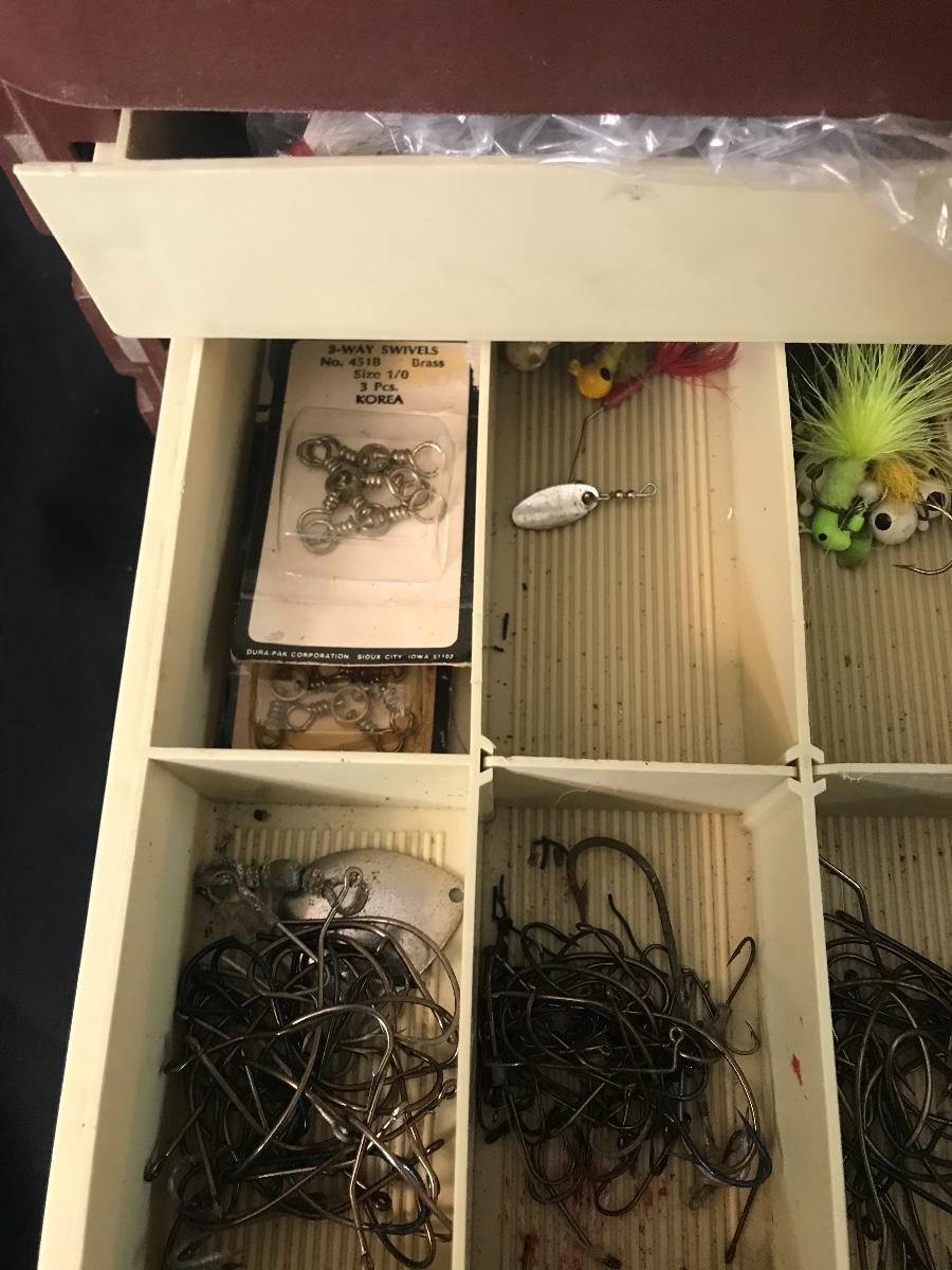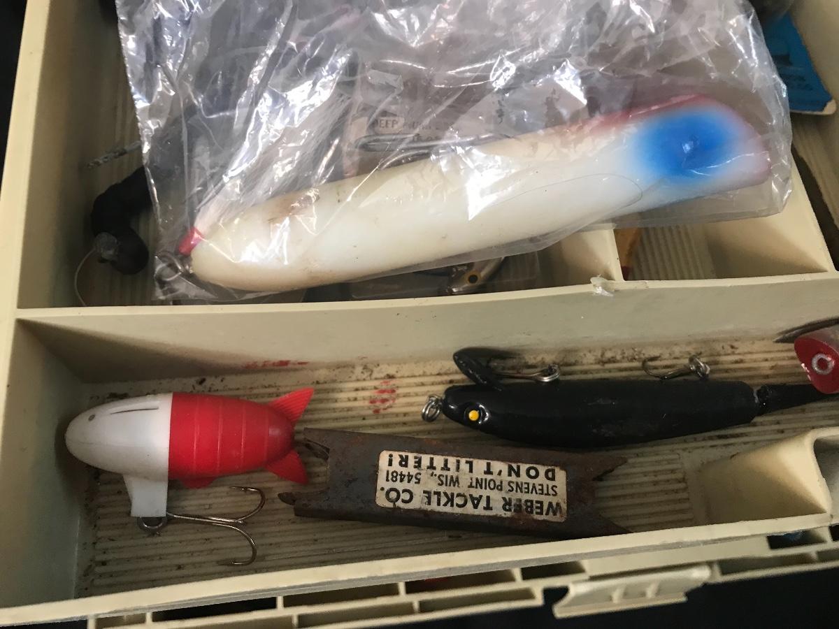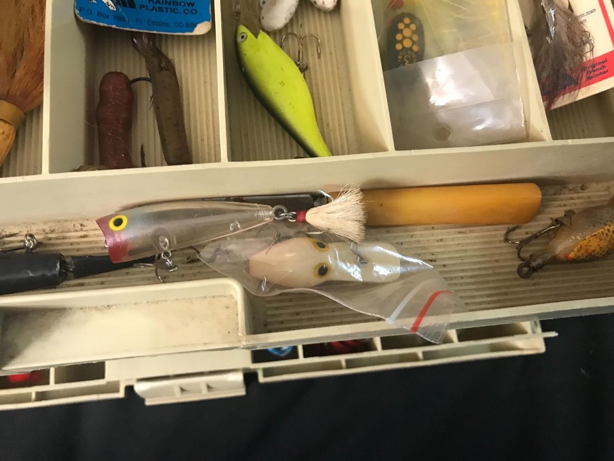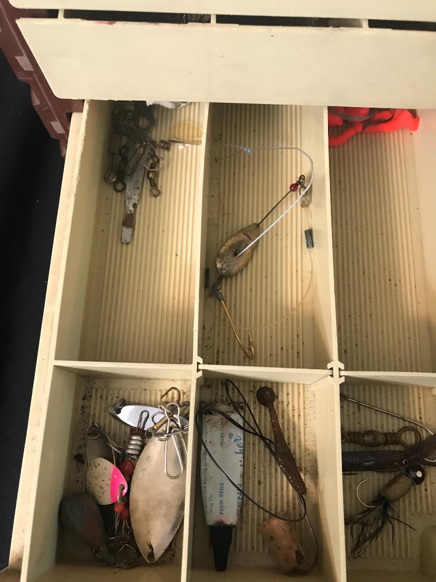 Large Plano Fishing Tackle Box Loaded With Tackle. Please see all pictures as they are the best representation of the items. The pictures show condition, measurements if taken, and what is included in the lot. Due to the large amount that we photograph and the time frame, we are not always able to take measurements. All items unless noted, are pre-owned and have been used. If you purchased furniture, you must bring help. We do not allow one person to carry large furniture out on their own. Bring help, tools and a truck for the safety of our client’s homes, and your personal safety. Company policy. Thank you.