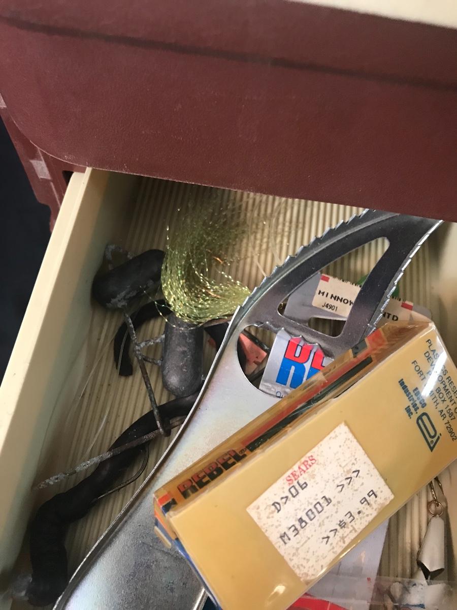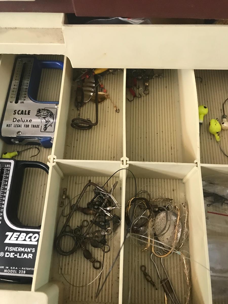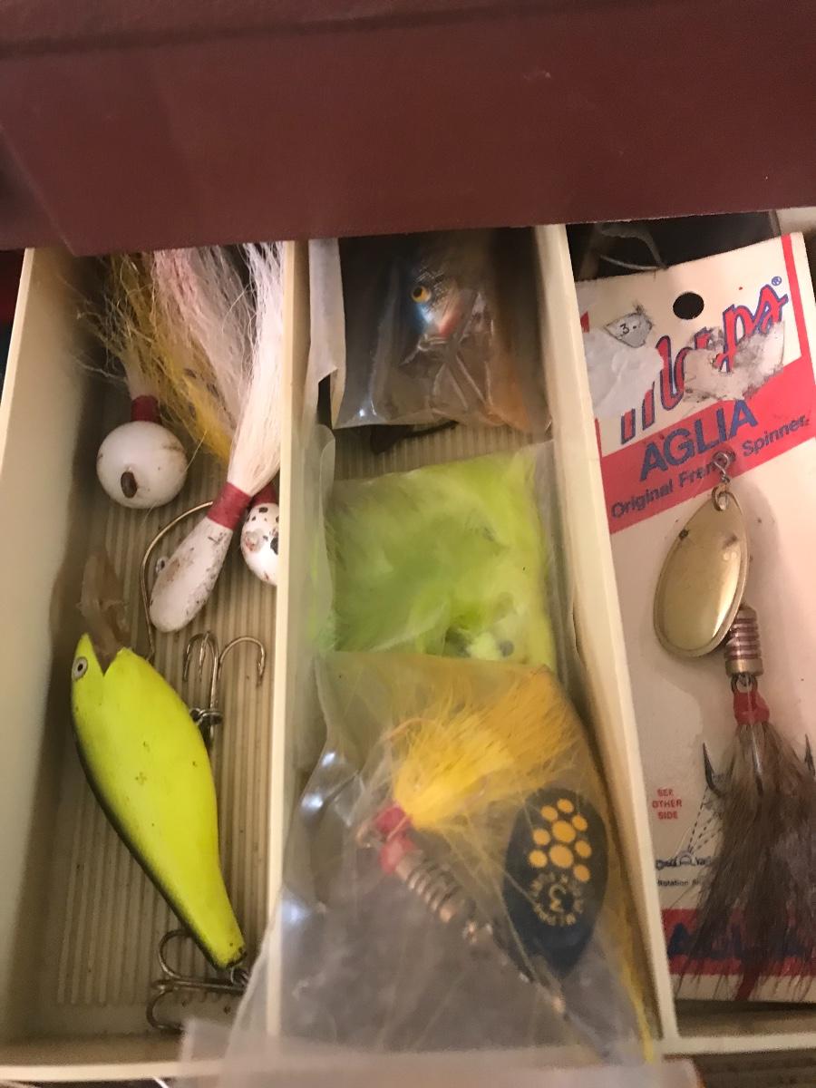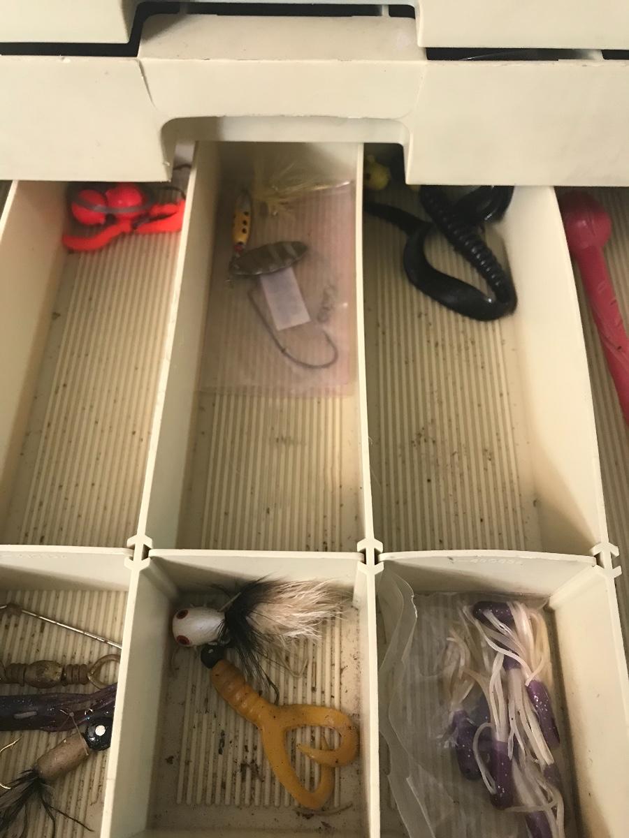 Large Plano Fishing Tackle Box Loaded With Tackle. Please see all pictures as they are the best representation of the items. The pictures show condition, measurements if taken, and what is included in the lot. Due to the large amount that we photograph and the time frame, we are not always able to take measurements. All items unless noted, are pre-owned and have been used. If you purchased furniture, you must bring help. We do not allow one person to carry large furniture out on their own. Bring help, tools and a truck for the safety of our client’s homes, and your personal safety. Company policy. Thank you.