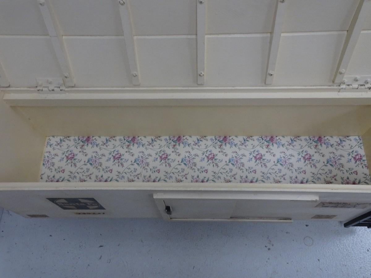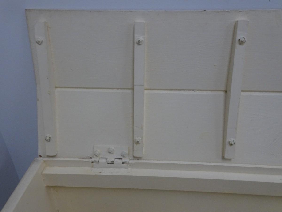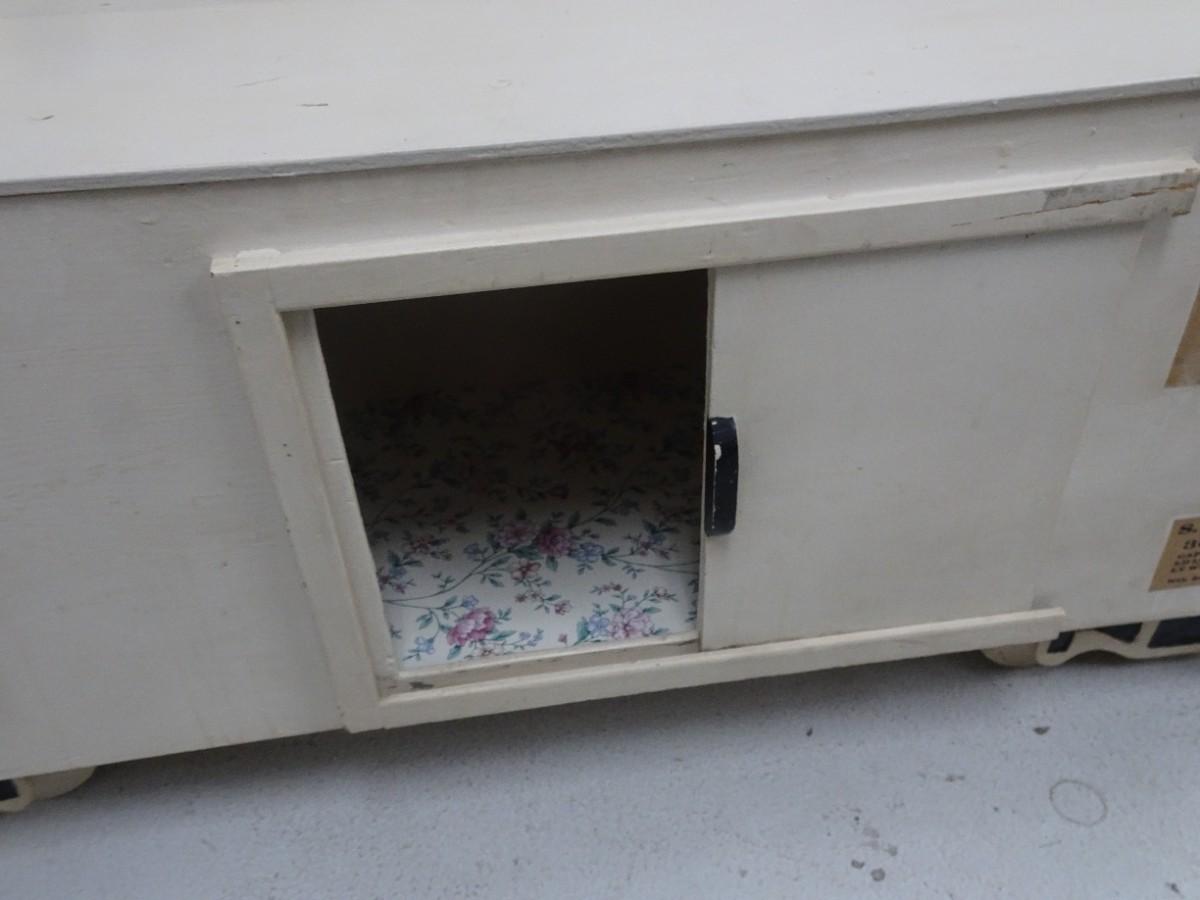 THIS UNIQUE TOY BOX HAS WHEELS AND IS WELL MADE APPEARS TO BE HOME MADE