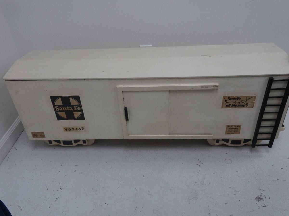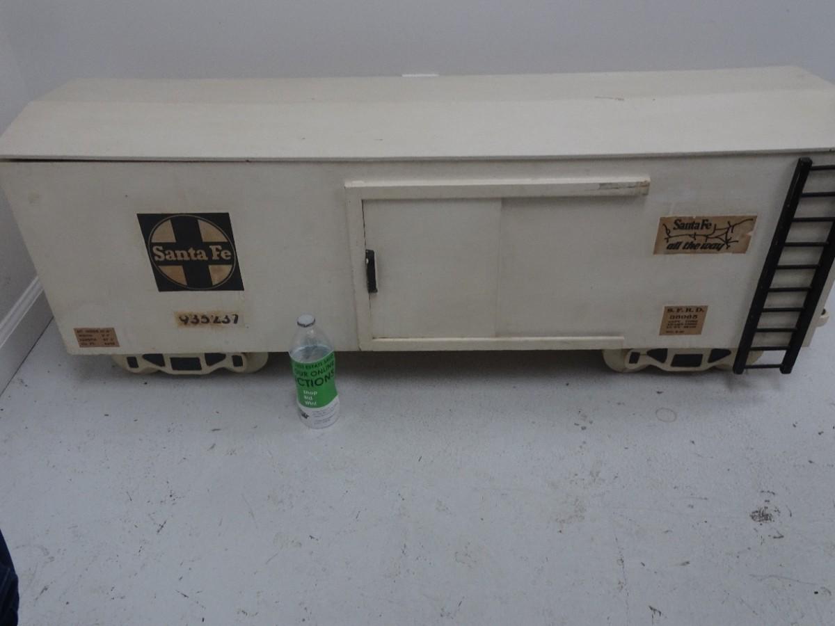 LOT 73 LARGE WOOD SANTA FE RAILROAD CAR TOY BOX