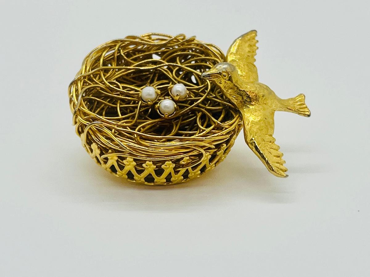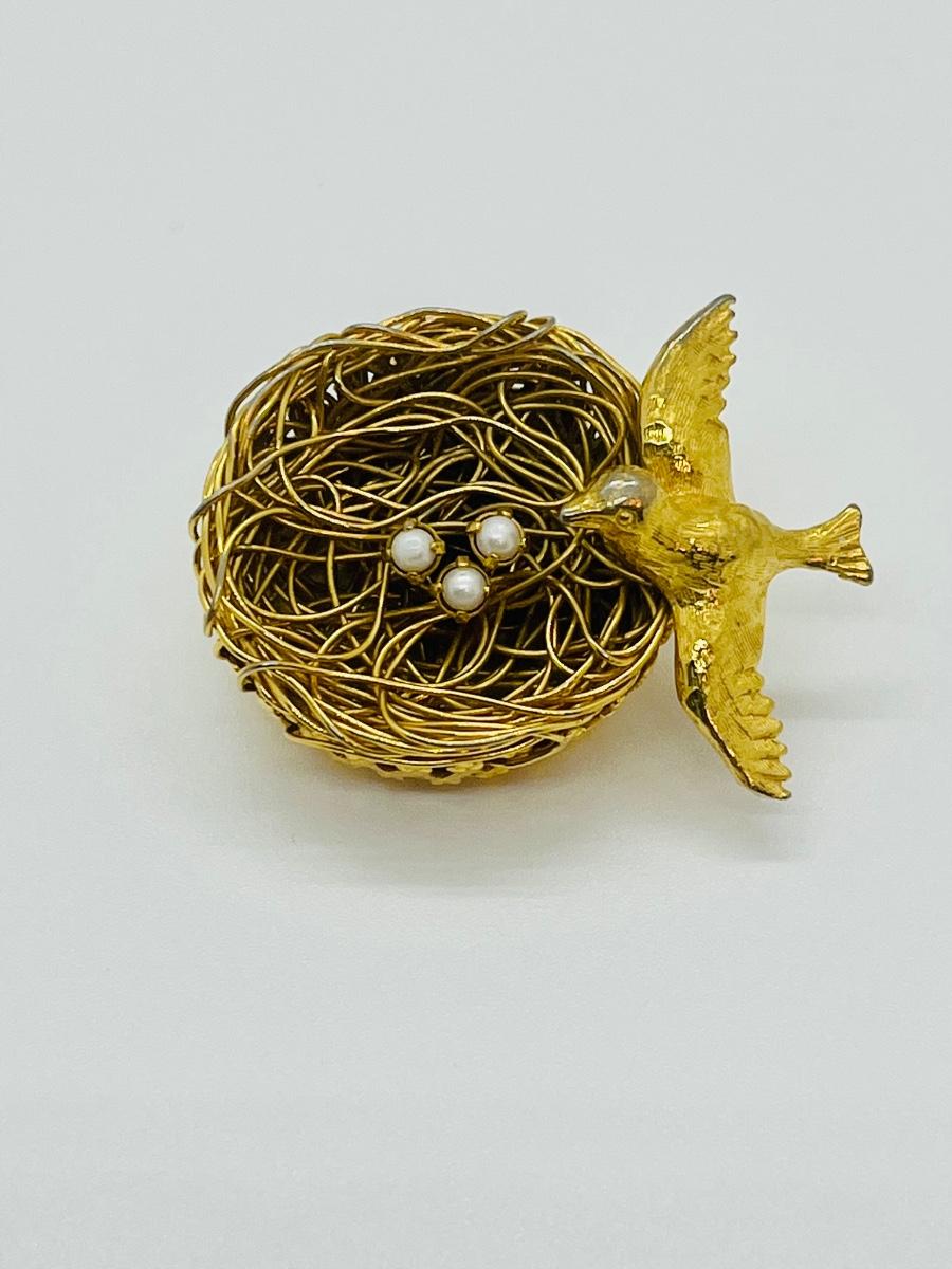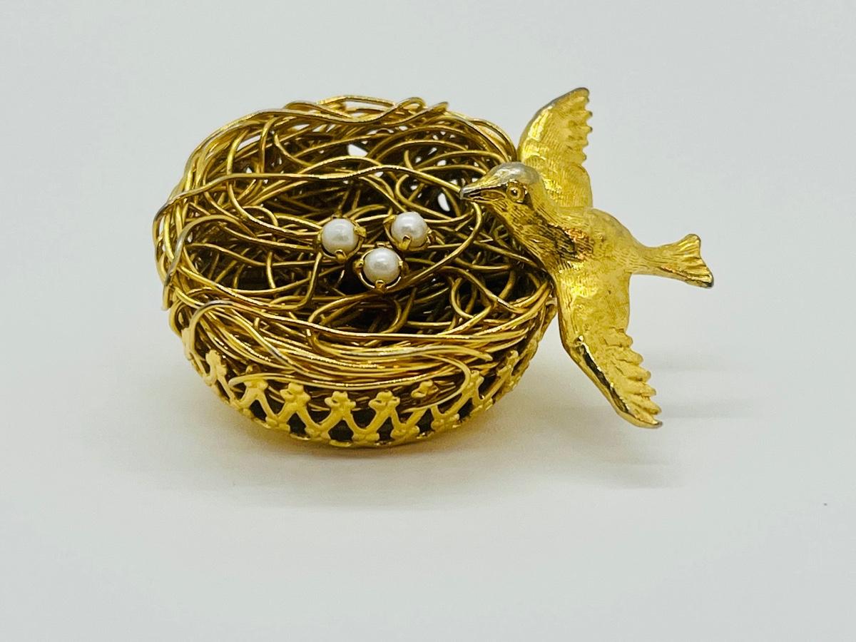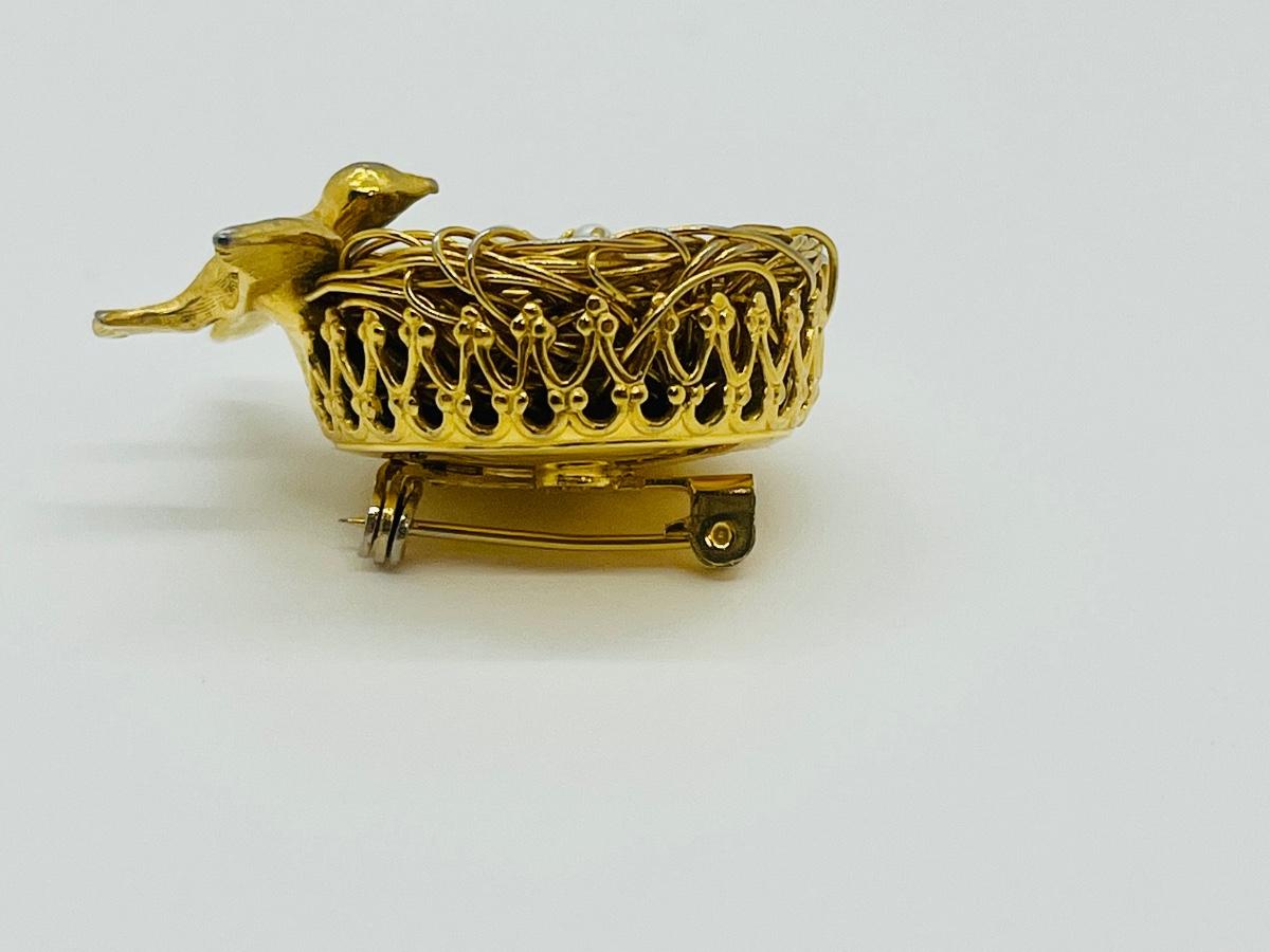 Lot 73: Vintage 3D Brooch Birdnest w/ Seed Pearl Eggs by Jeanne