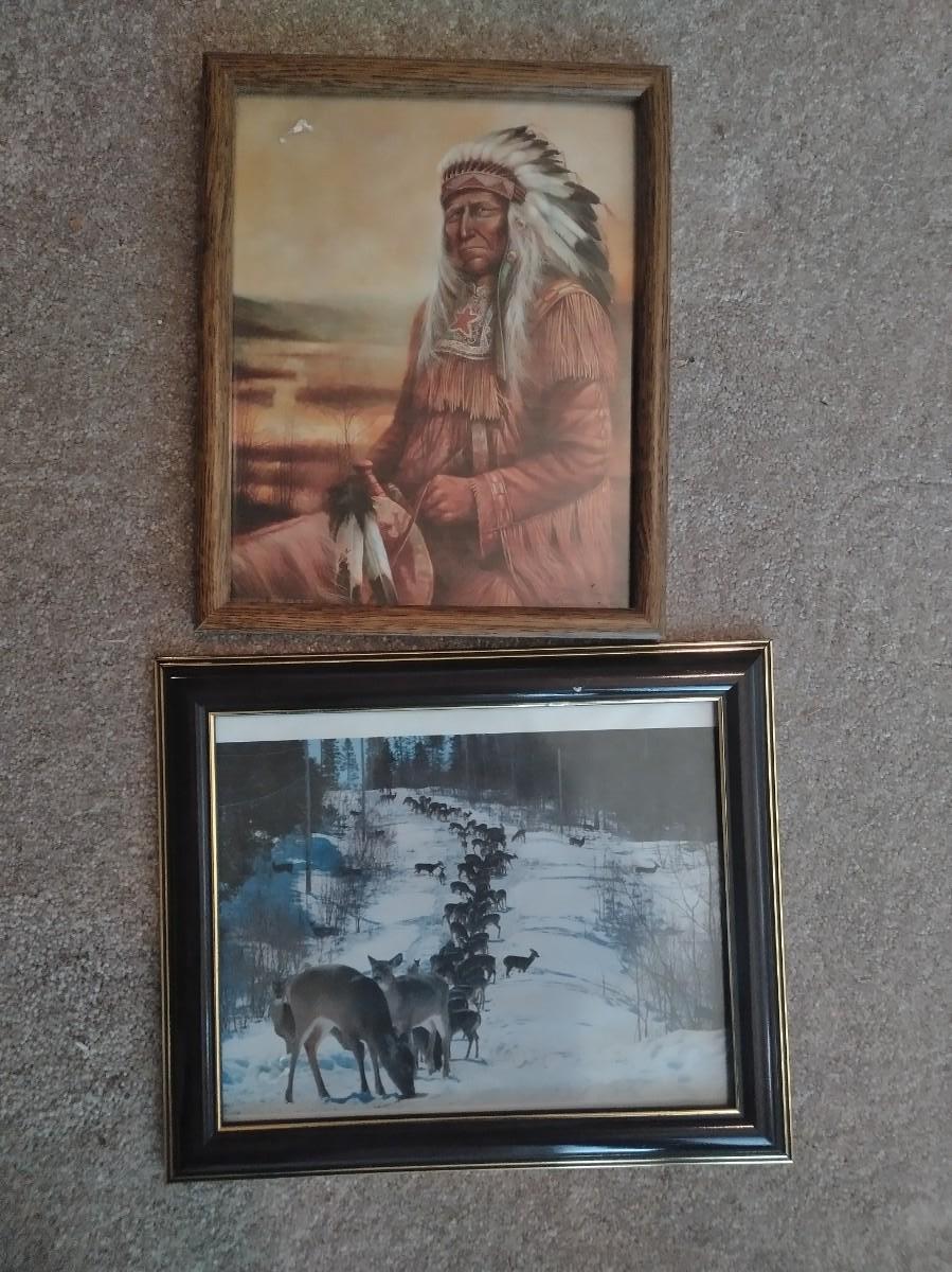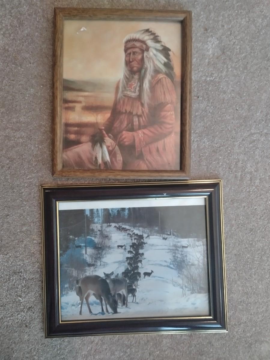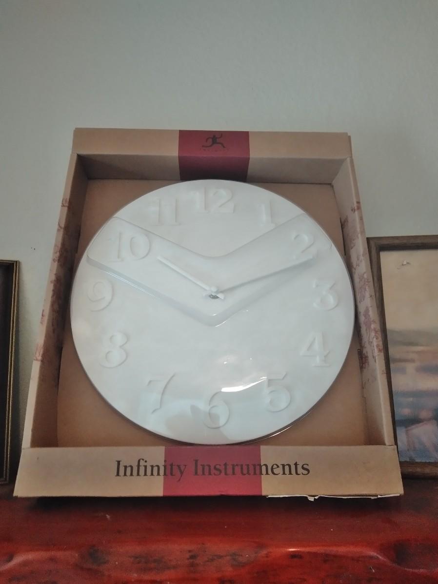 2 PLASTIC BATTERY OPERATED LANTERNS, NEW WALL MOUNTED CLOCK, 2 FRAMED PICTURES