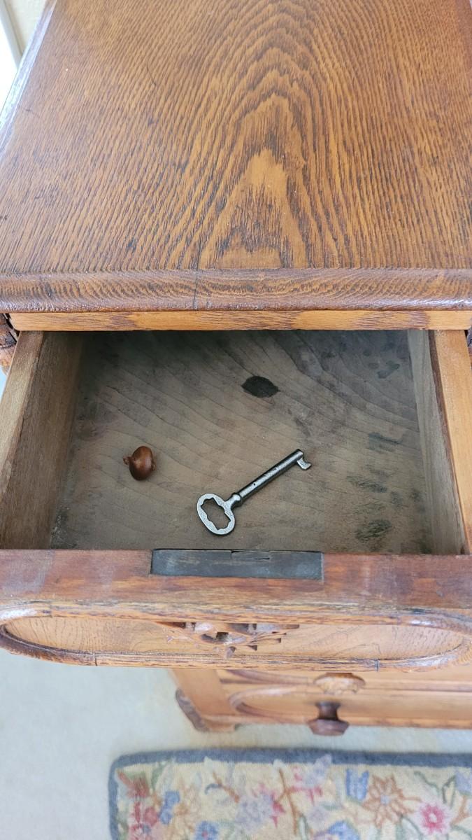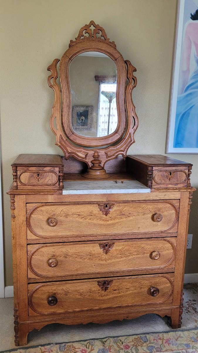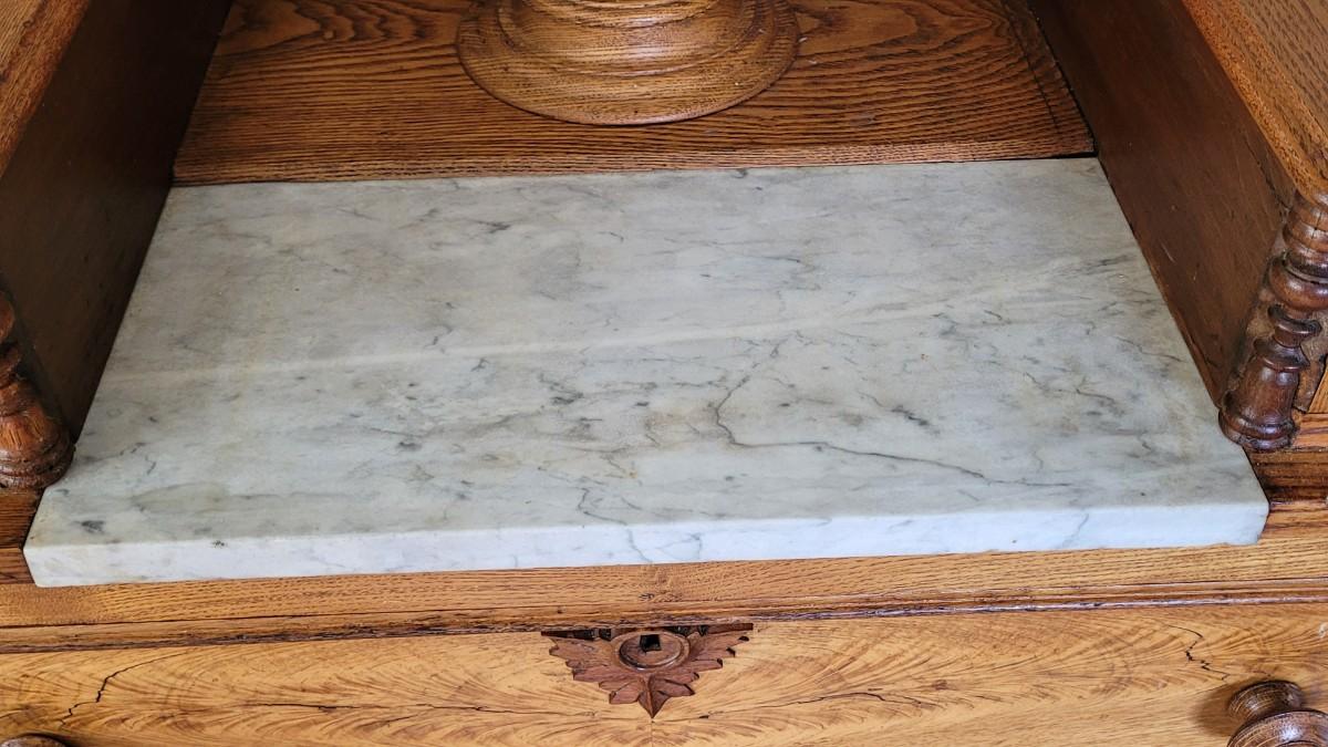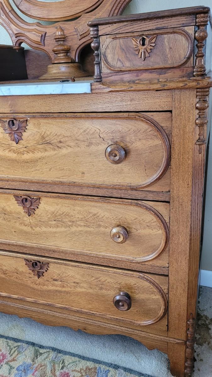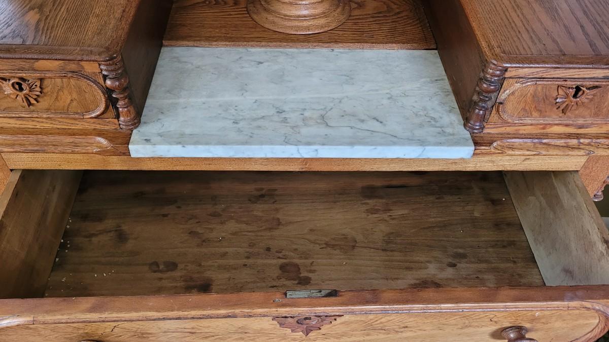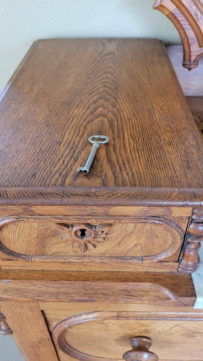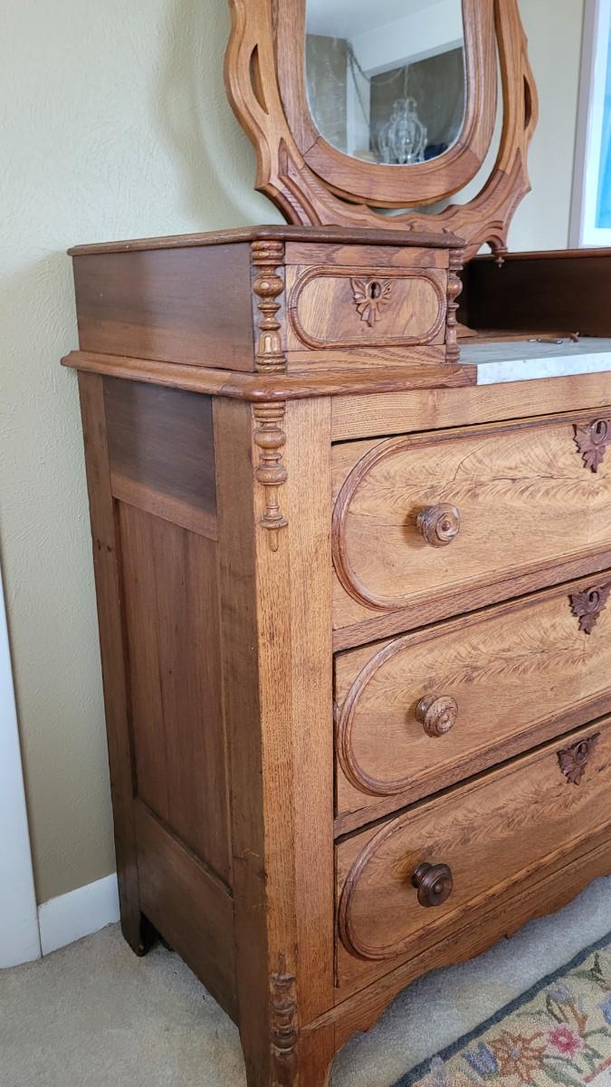 Lot 73: Antique Dresser featuring Marble Top and Original Key