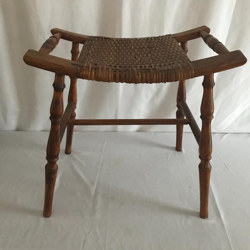 Beautiful small curved bottom stool with detailed legs and rattan seat. Stool measures 18.5” x12.5” x18.5”. This lot is available for local pick up in Asheville, NC only.