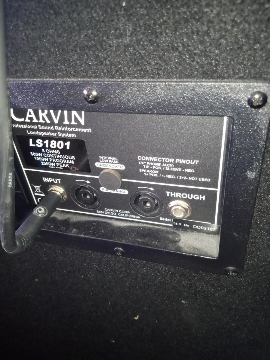 LOT 73  CARVIN LS1801 LOUDSPEAKER SYSTEM, CORD  AND POLE STAND