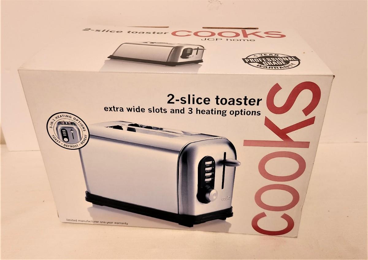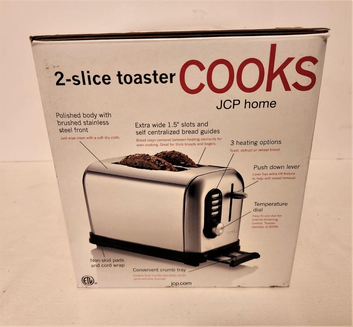 Never removed from box - JC Penney COOKS Toaster - NEW - extra wide 1.5" slots, crumb tray, 3 heating options.