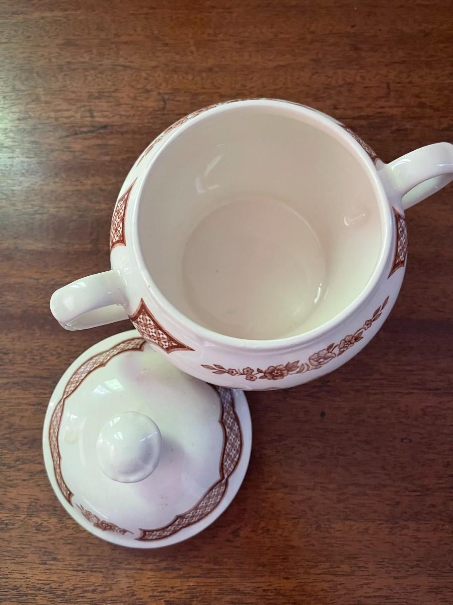 Sugar: 4 1/2" with lid x 6" W with handle x 4" D