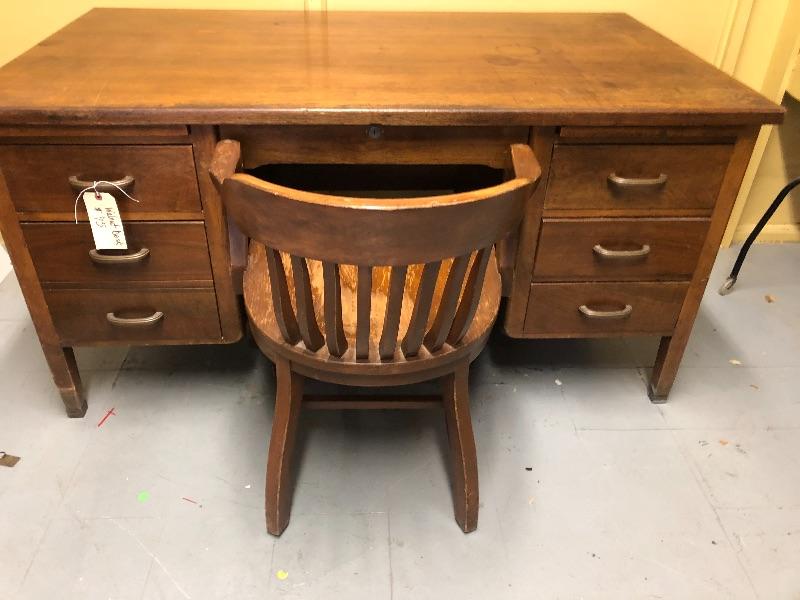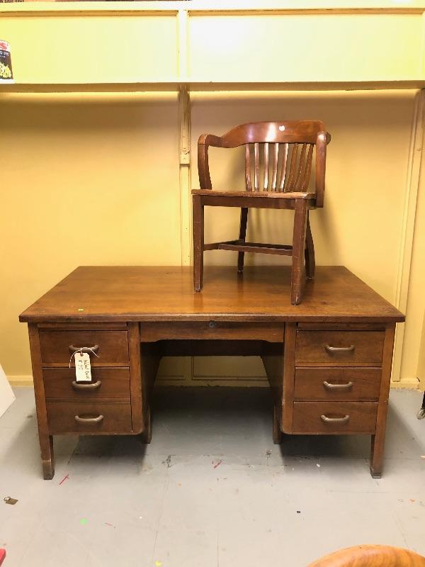 Walnut desk and chair. desk 30hx34deepx60w: Vintage used condition