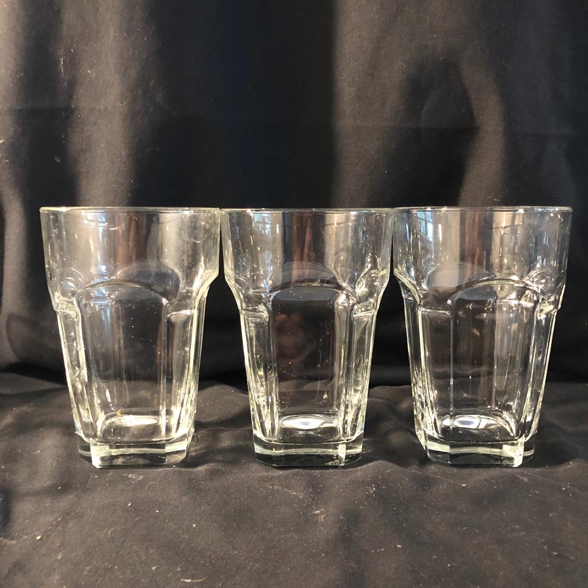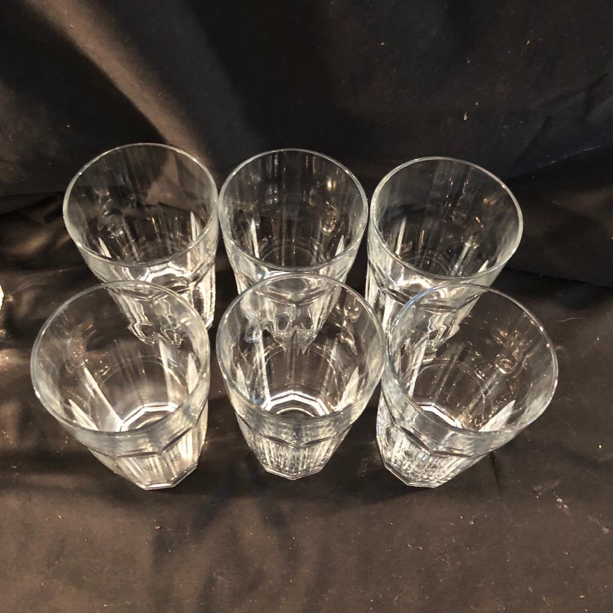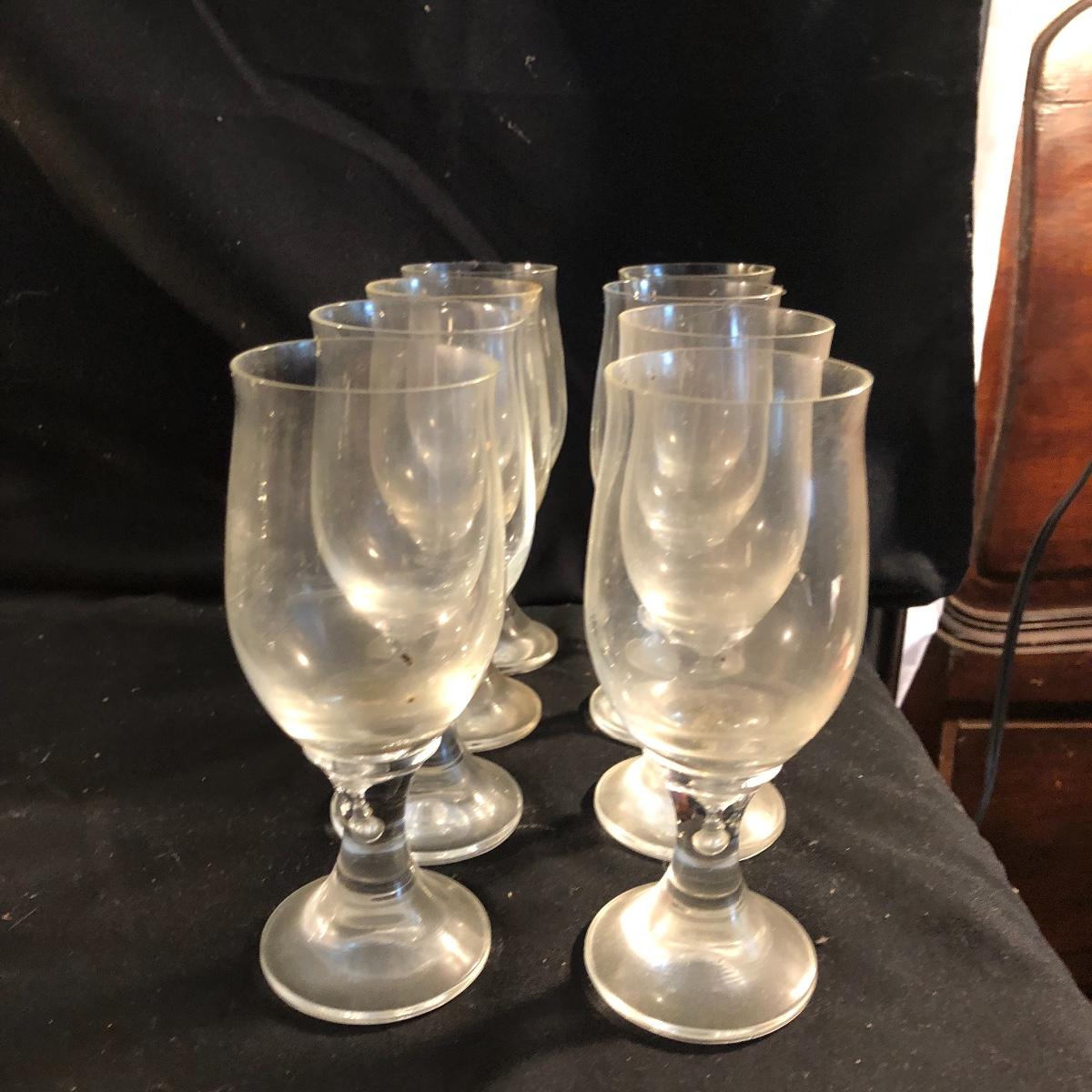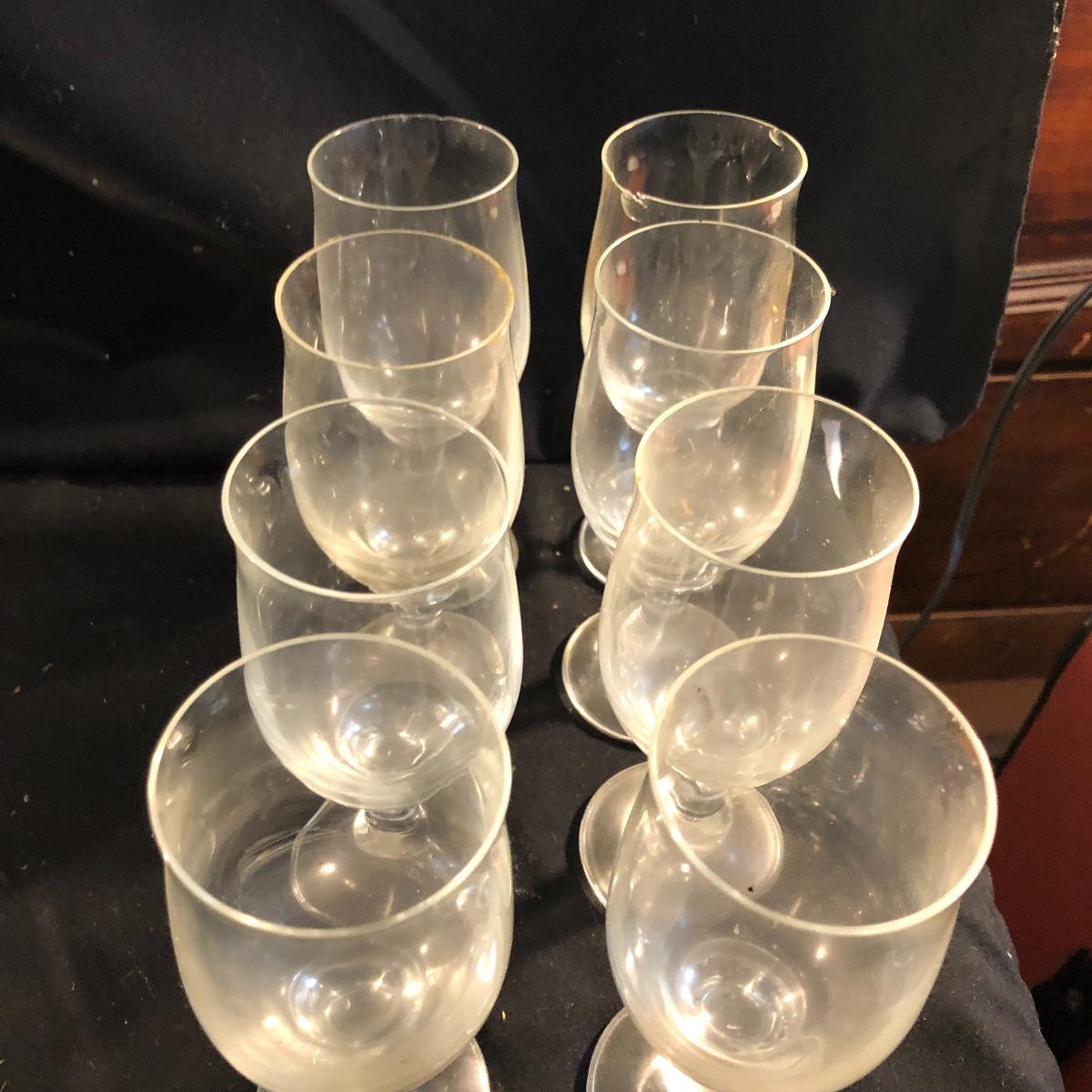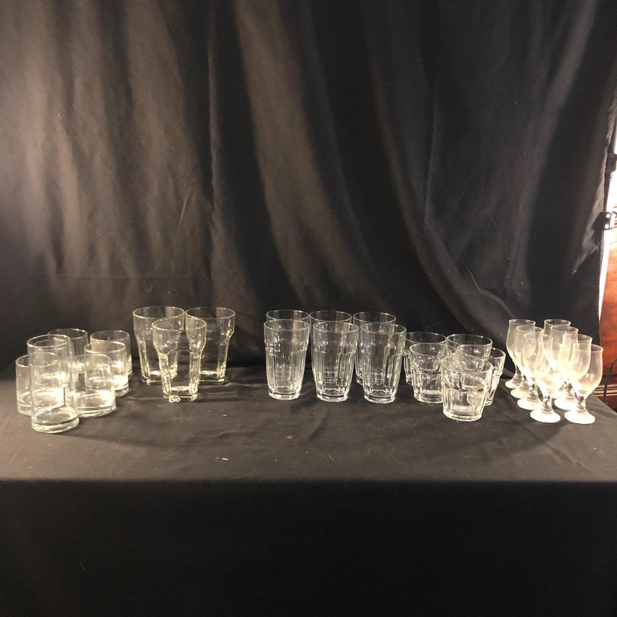 A mixture of glassware. Lot includes six medium and small glasses, five small glasses and three large glasses and eight cordial glasses that have one that is chipped, other than this one chipped glass, the rest just need a run through the wash to clean them up.