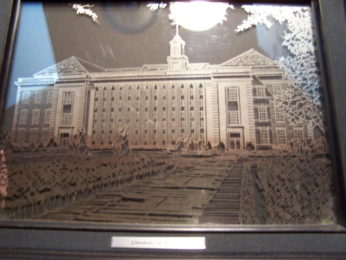LOT 73 GREAT VINTAGE UNIVERSITY OF NEBRASKA STERLING OVERLAY ART WORK