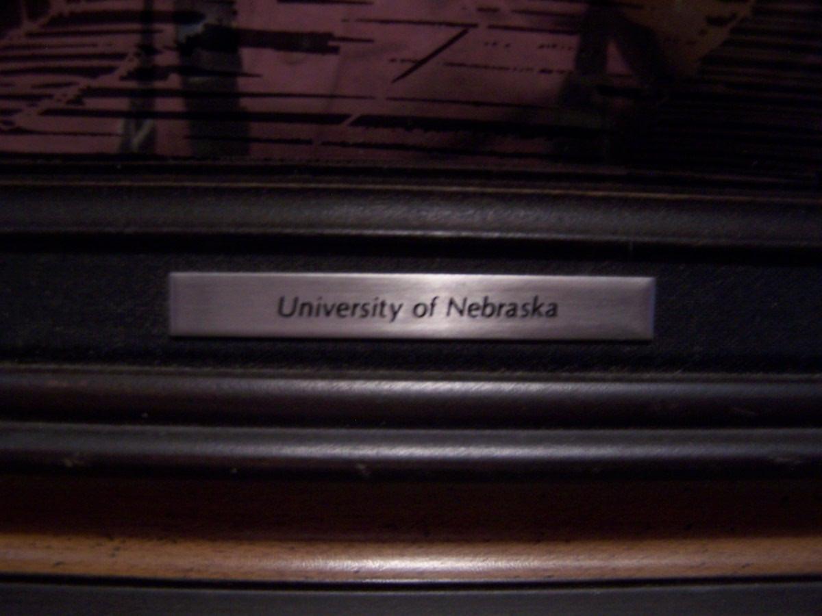 THIS A GREAT COLLECTIBLE UNIVERSITY OF NEBRASKA STERLING OVERLAY ART WORK.... FRAME IS 12 1/2'' X 14 3/4''... SOME WEAR/DINGS TO THE FRAME...