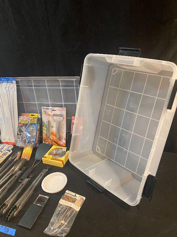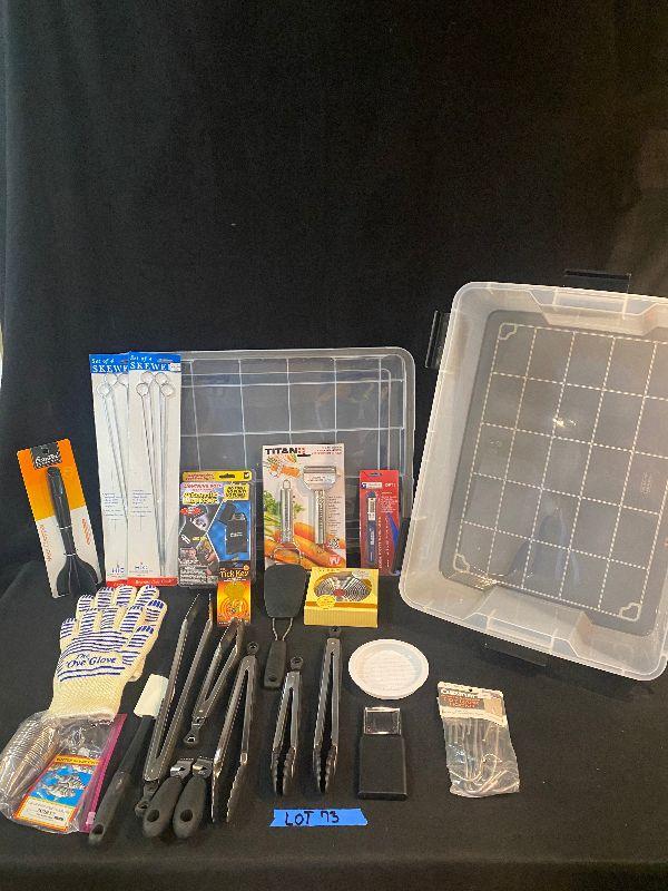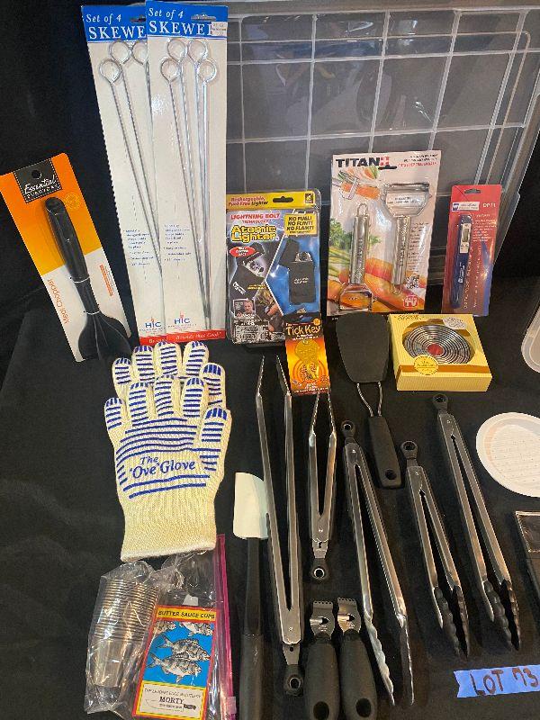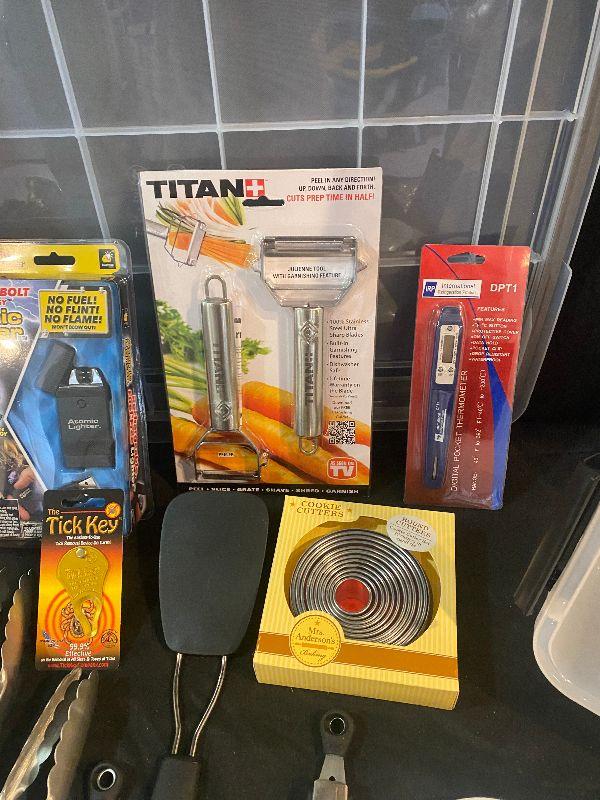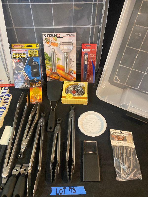 Lot 73 - Kitchen Items (Oven glove, cookie cutters, atomic lighter, thongs, Titan cheese slicer and much more!)