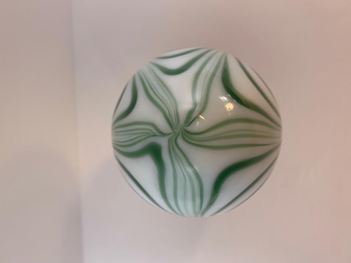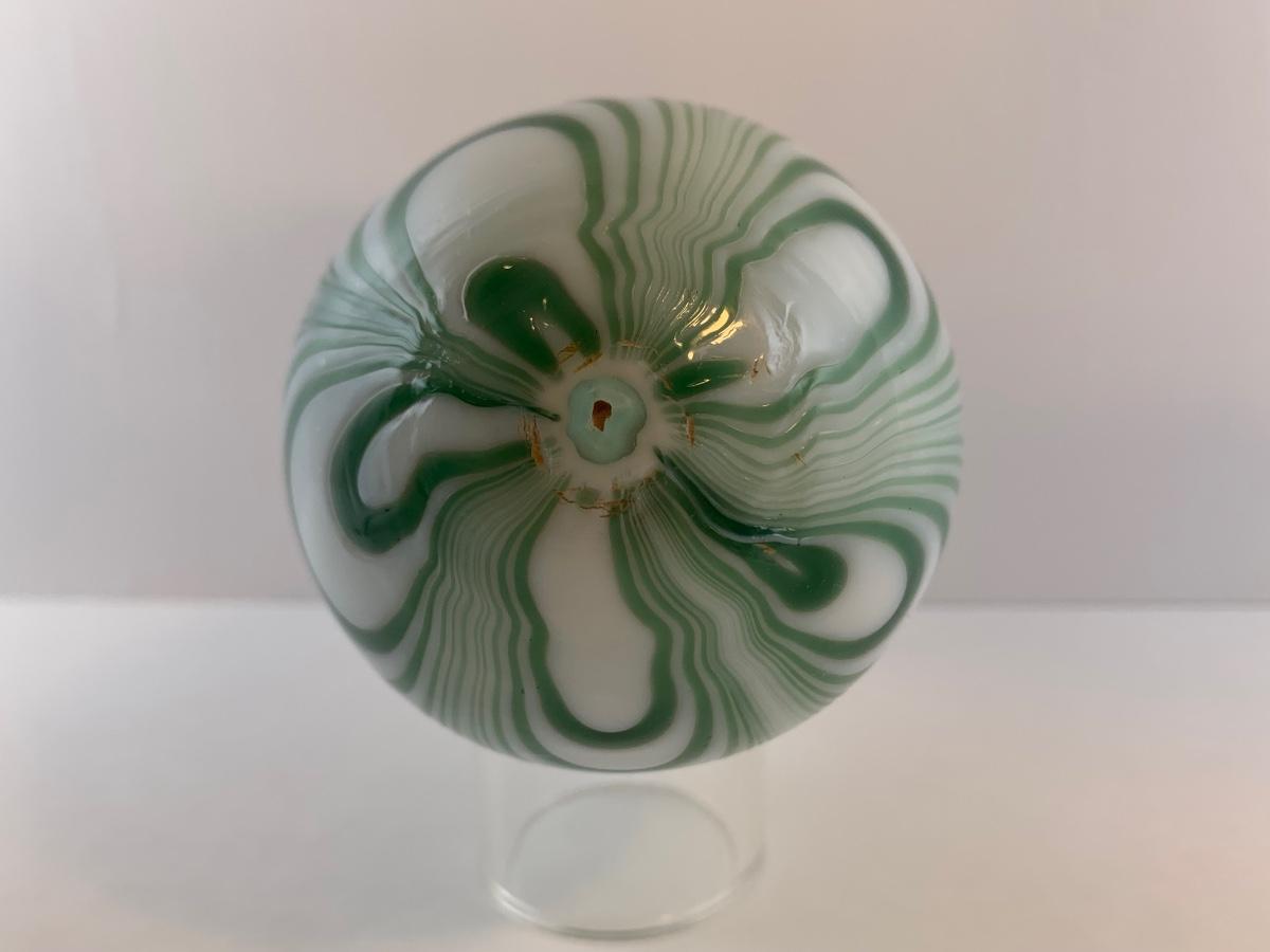 Vintage unmarked green and opaque freeform swirls, possibly Vandermark Merritt. 3" x 4"