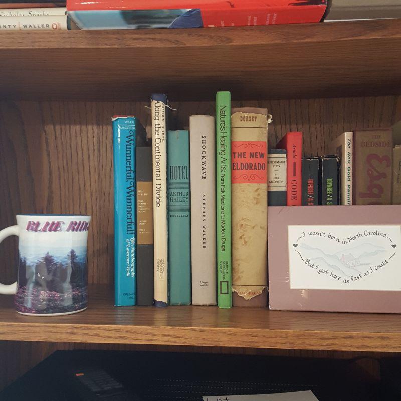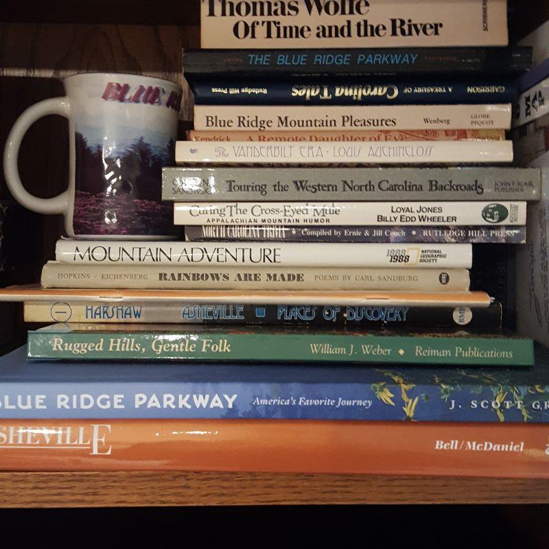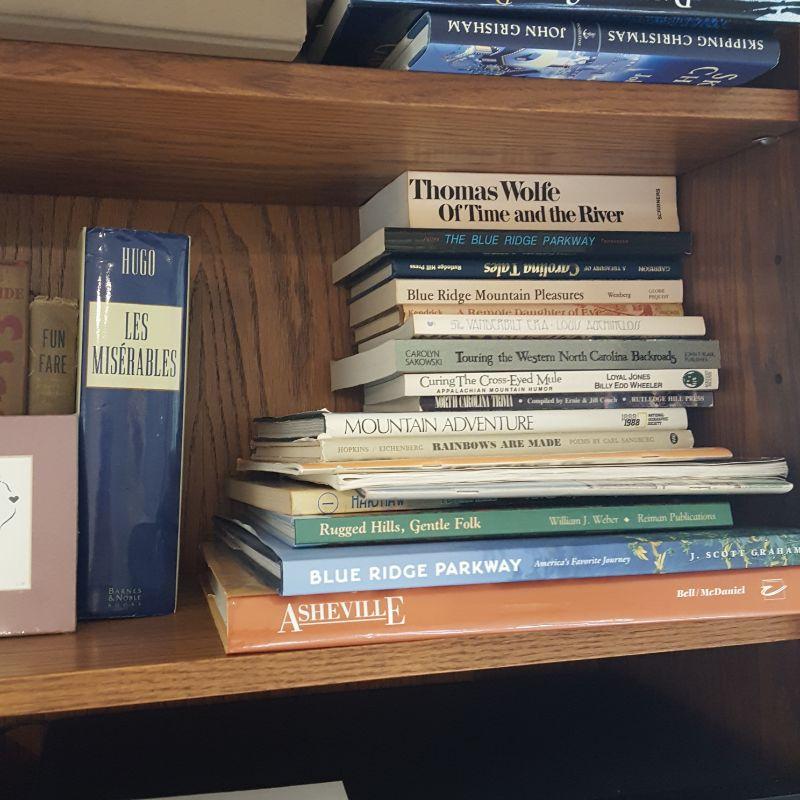 If you are interested in learning more about the Asheville/Blue Ridge area this lot is for you! Some titles include Rugged Hills, Gentle Folk, The Blue Ridge Parkway, Thomas Wolfe of Time and the River and North Carolina Trivia. See pictures for all titles and authors. This lot also includes a Blue Ridge Parkway mug and a small 6x5 picture. Bookshelf not included in this lot. Local pick up only.