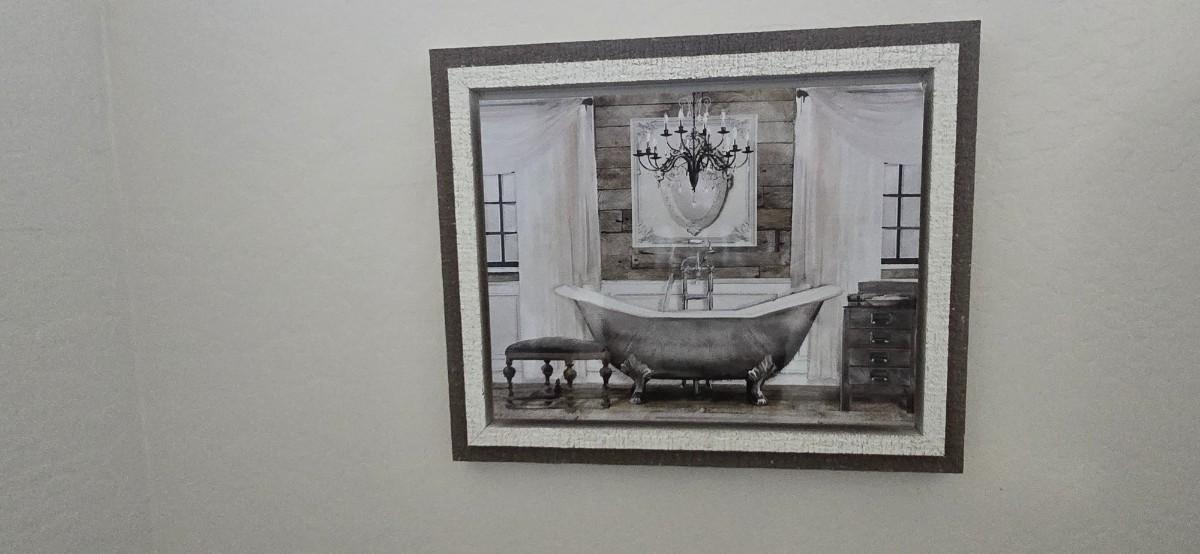Metal Lamp / Ironing Board / Bathroom Artwork