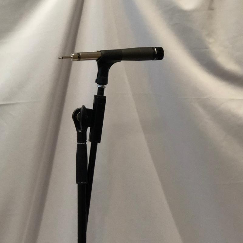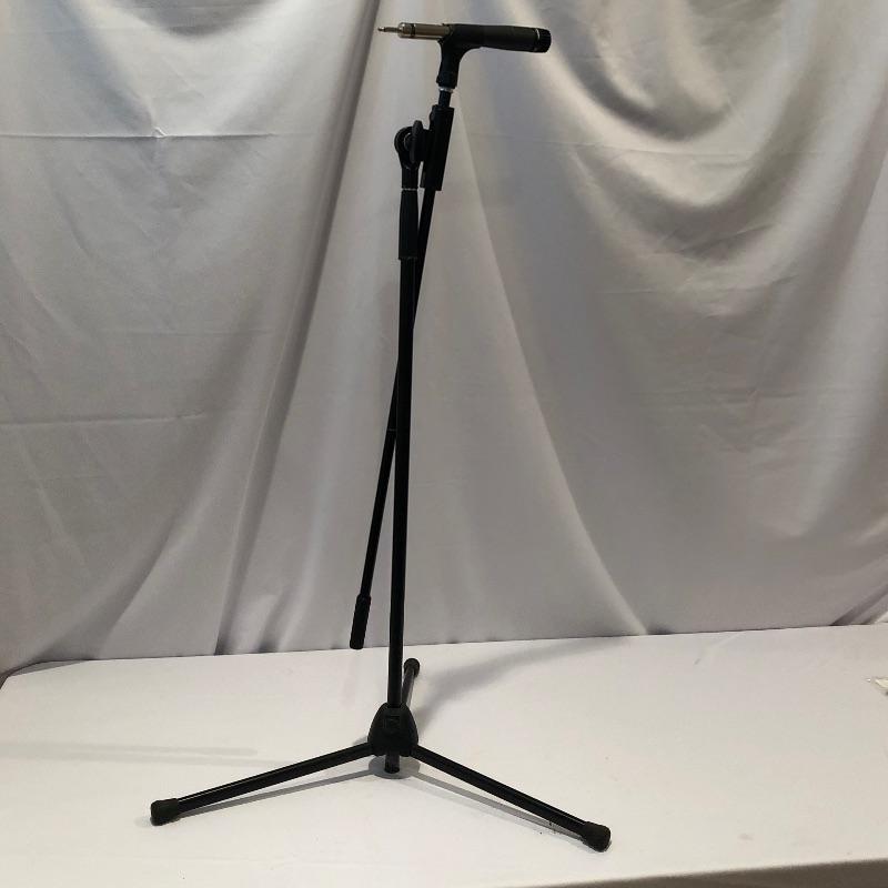 Shure Microphone and K& M stand so you can perform in front of a crowd. Stand measures 58” tall fully extended and the tilt part of the stand that holds the microphone can add an extra 26” of height if needed. No microphone cord included. No shipping.
