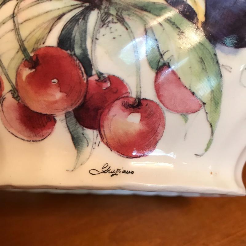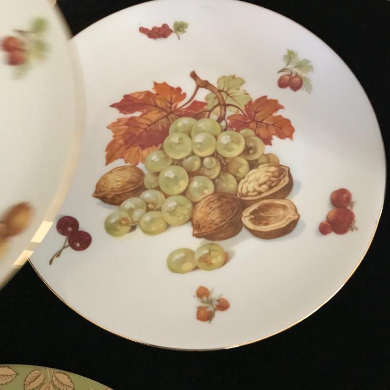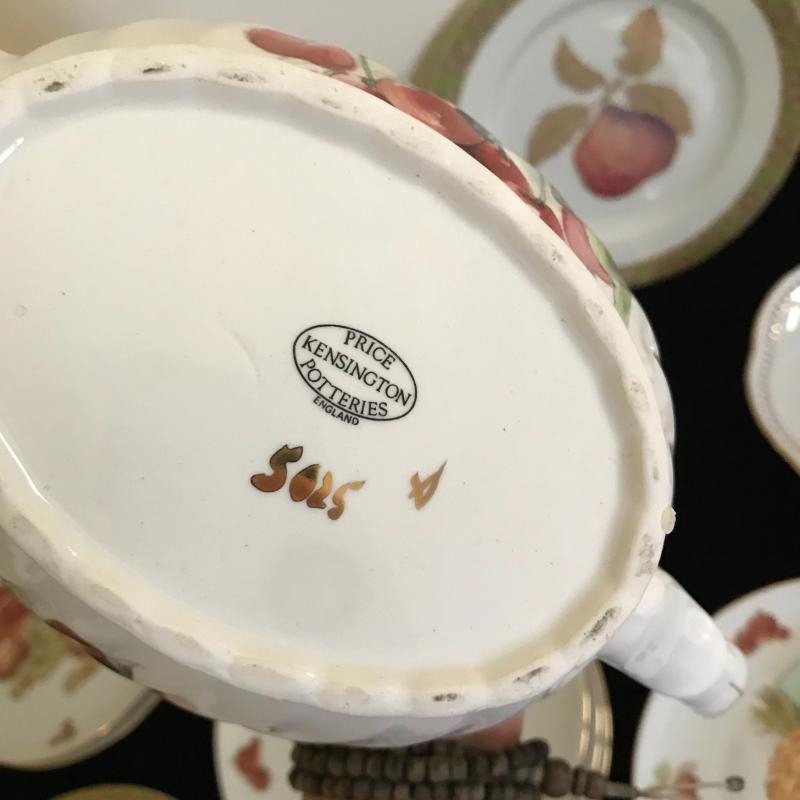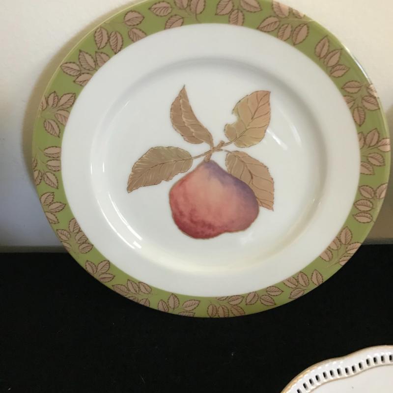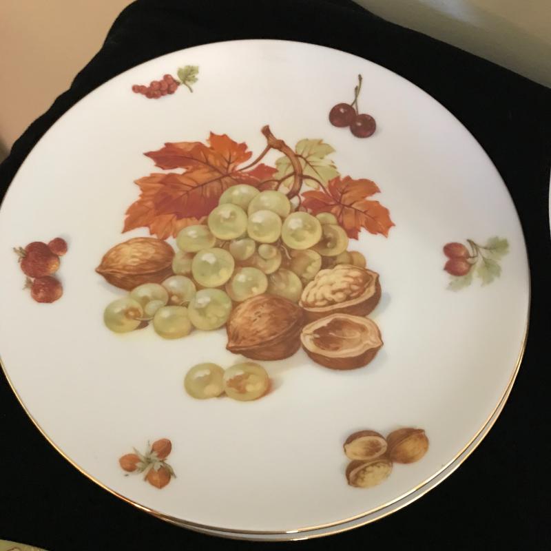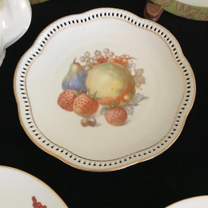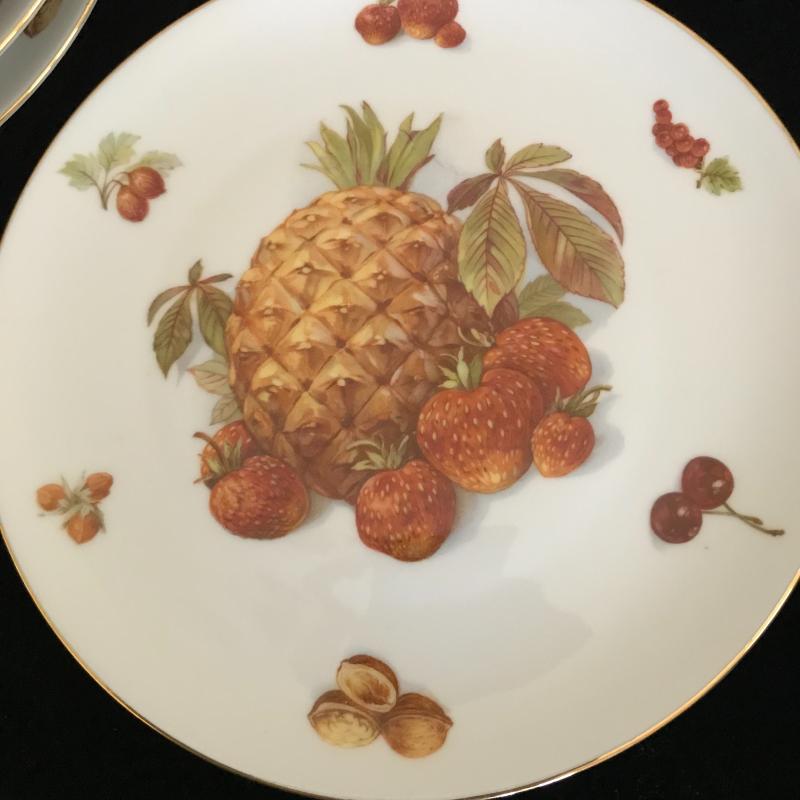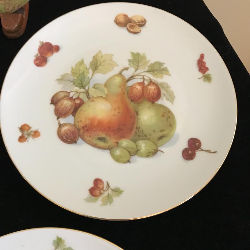 Lot includes 13 plates and one signed teapot, all with fruit prints. Markings are Prince Kensington, Schumann Arzberg Germany, Feltmann Weidew western Germany, and Crate and Barrel. No shipping available. Local pickup only in Hendersonville, NC.