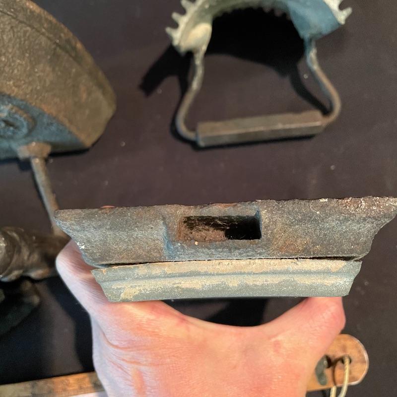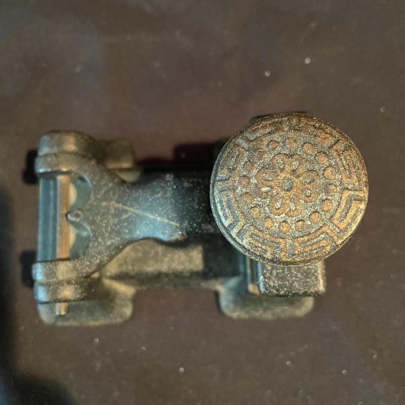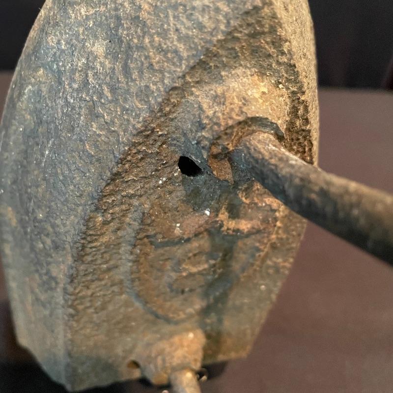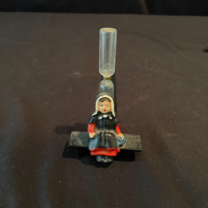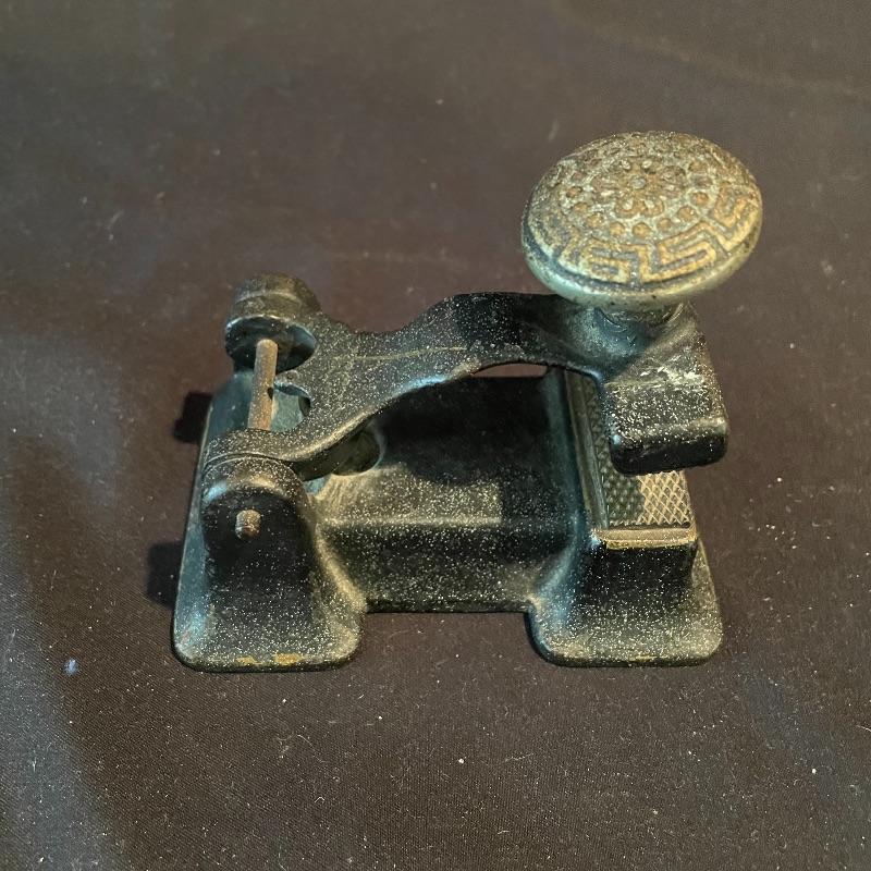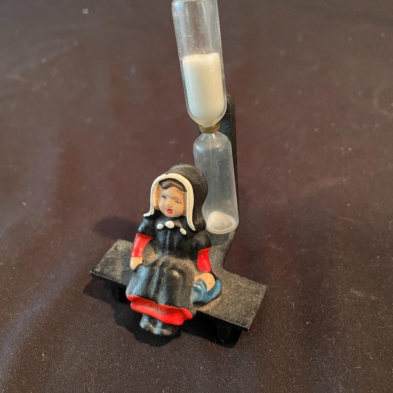 Perfect for the farmhouse or antique enthusiasts. Geneva Hand Fluter, full metal iron, unique metal press and adorable metal decor with about a 4 minute hourglass timer. The iron measures approximately 7” x 4” x 5.25”. Lot also features a wooden encased thermometer. Shipping available, please note these items are heavy. Please call UPS at 828-252-6930 for a quote prior to bidding.