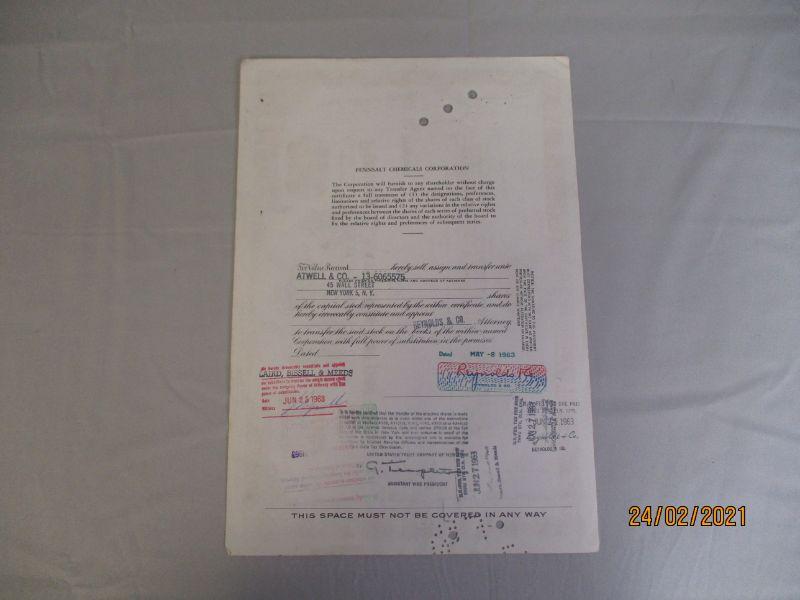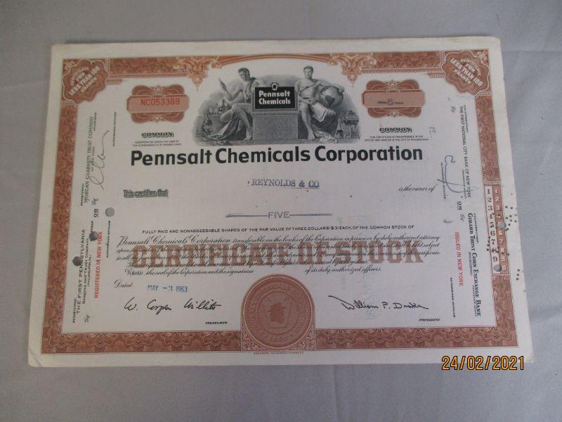 Lot 73 - Pennsalt Chemicals Corp Stock Certificate