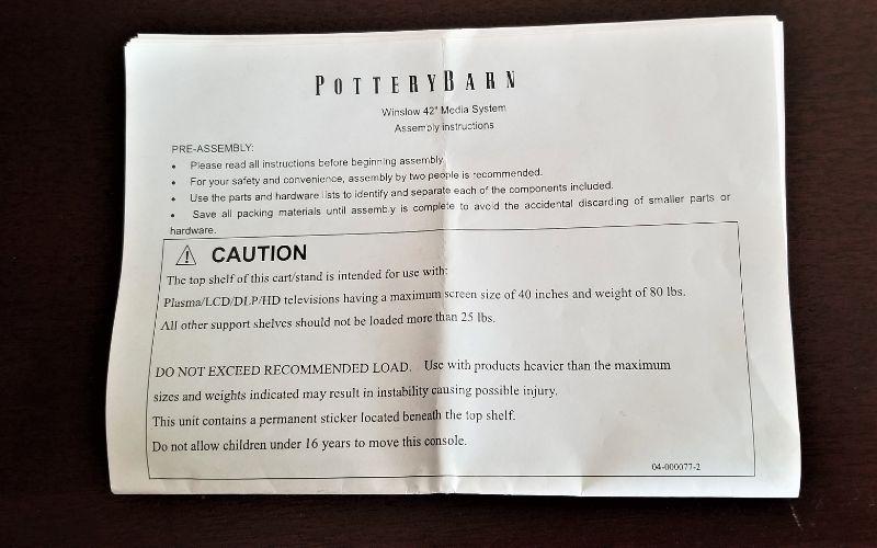 Lot #73 Pottery Barn Winslow 42" Media Center - Gently Used
