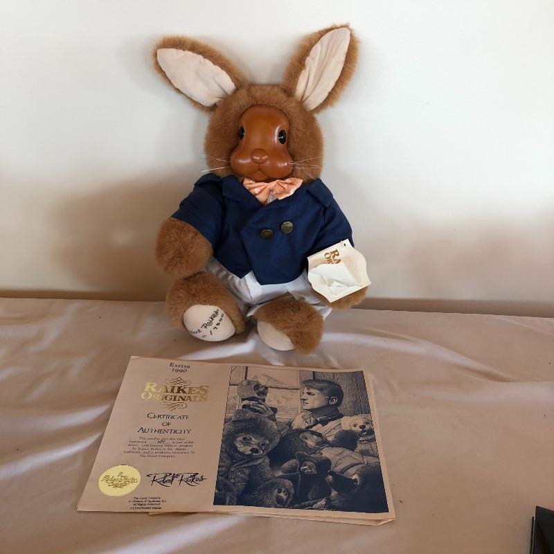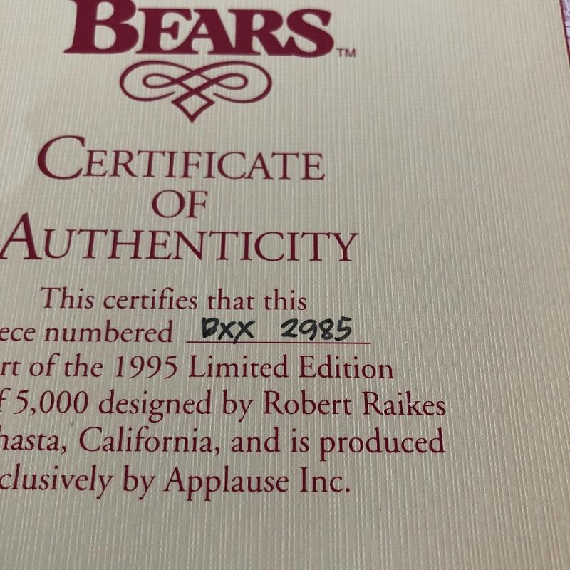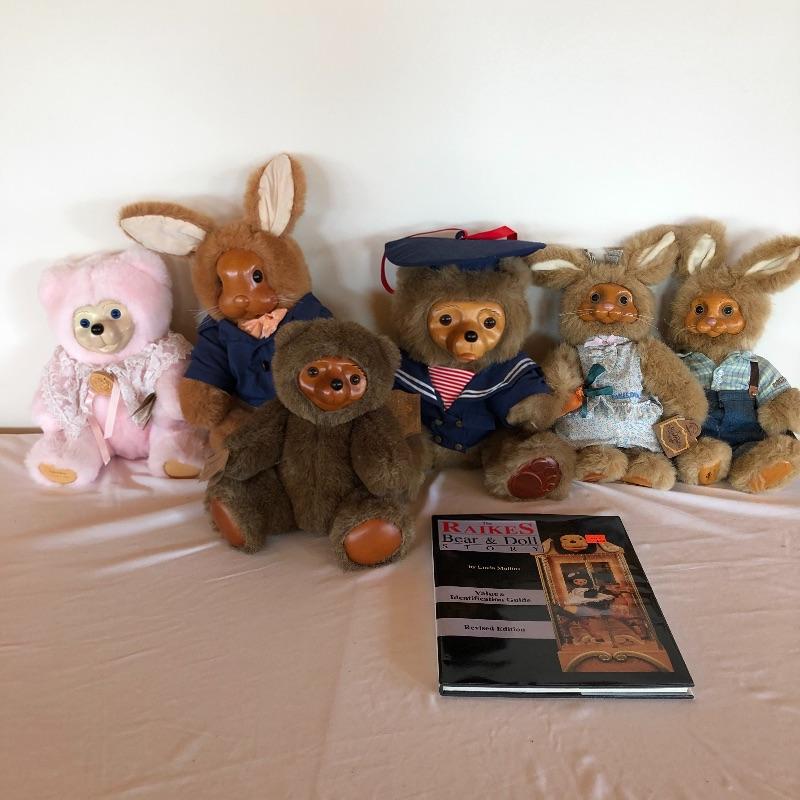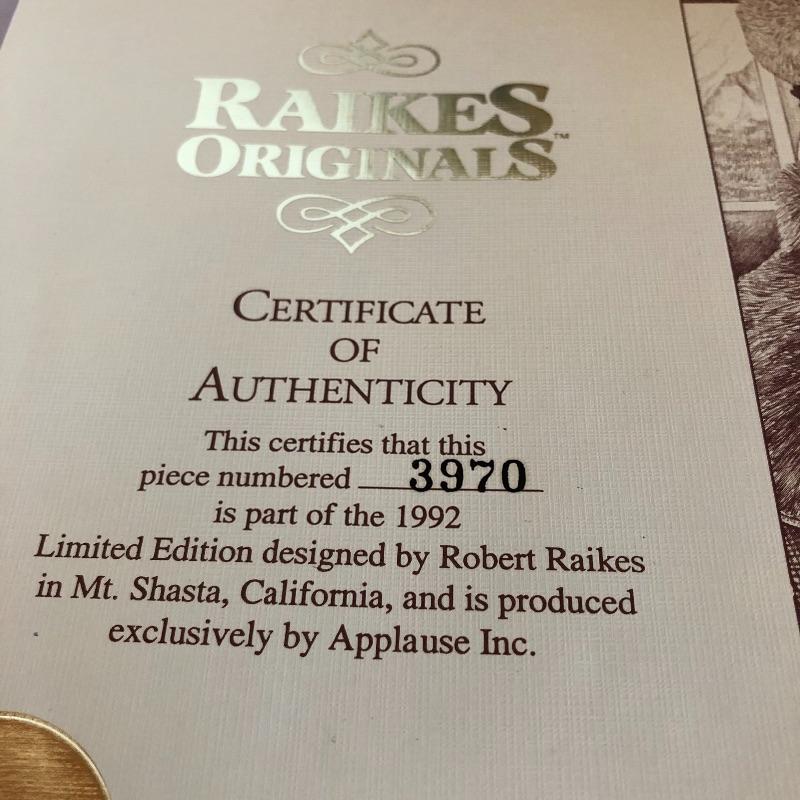 This collection of Raikes bears includes five bears that are numbered and come with COA and a Raikes bear that is unnumbered. Largest bear measures 8” x 9” x 12”.