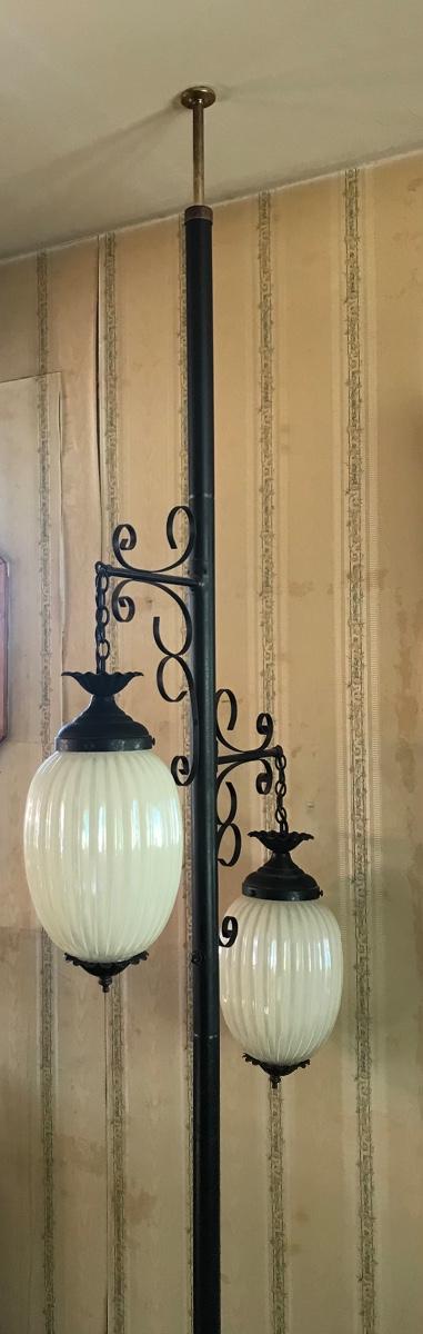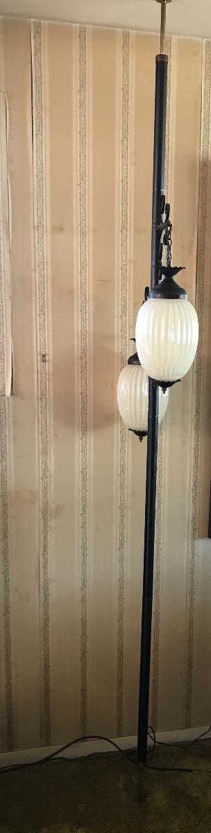 Tension Pole Floor Lamp - currently installed in home with eight-foot ceiling, pendants measure approximately 22 inches out from wall. Working condition. The pictures show condition, measurements if taken, and what is included in the lot. Due to the large amount that we photograph and the time frame, we are not always able to take measurements. All items unless noted, are pre-owned and have been used. If you purchased furniture, you must bring help. We do not allow one person to carry large furniture out on their own. Bring help, tools and a truck for the safety of our client’s homes, and your personal safety. Company policy. Thank you.