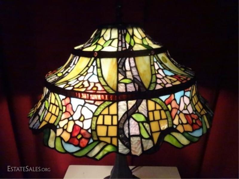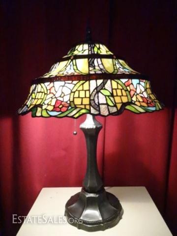 LOT 73: TIFFANY STYLE LEADED GLASS LAMP BY SPLENDOR LIGHTING