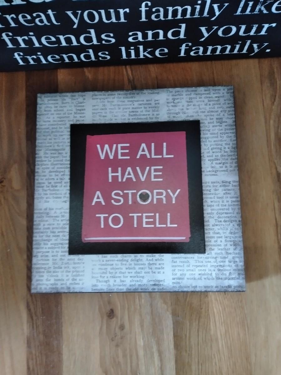 FAMILY PICTURE 28" X 22" AND WE ALL HAVE A STORY TO TELL STORY PICTURE 12" X 12"
