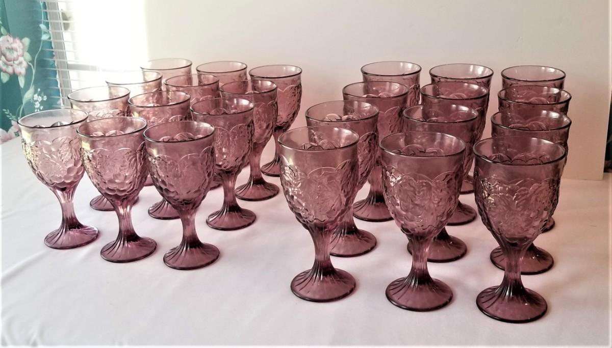 Lot #73  Two Sets of 12 Contemporary Purple Glass Goblets