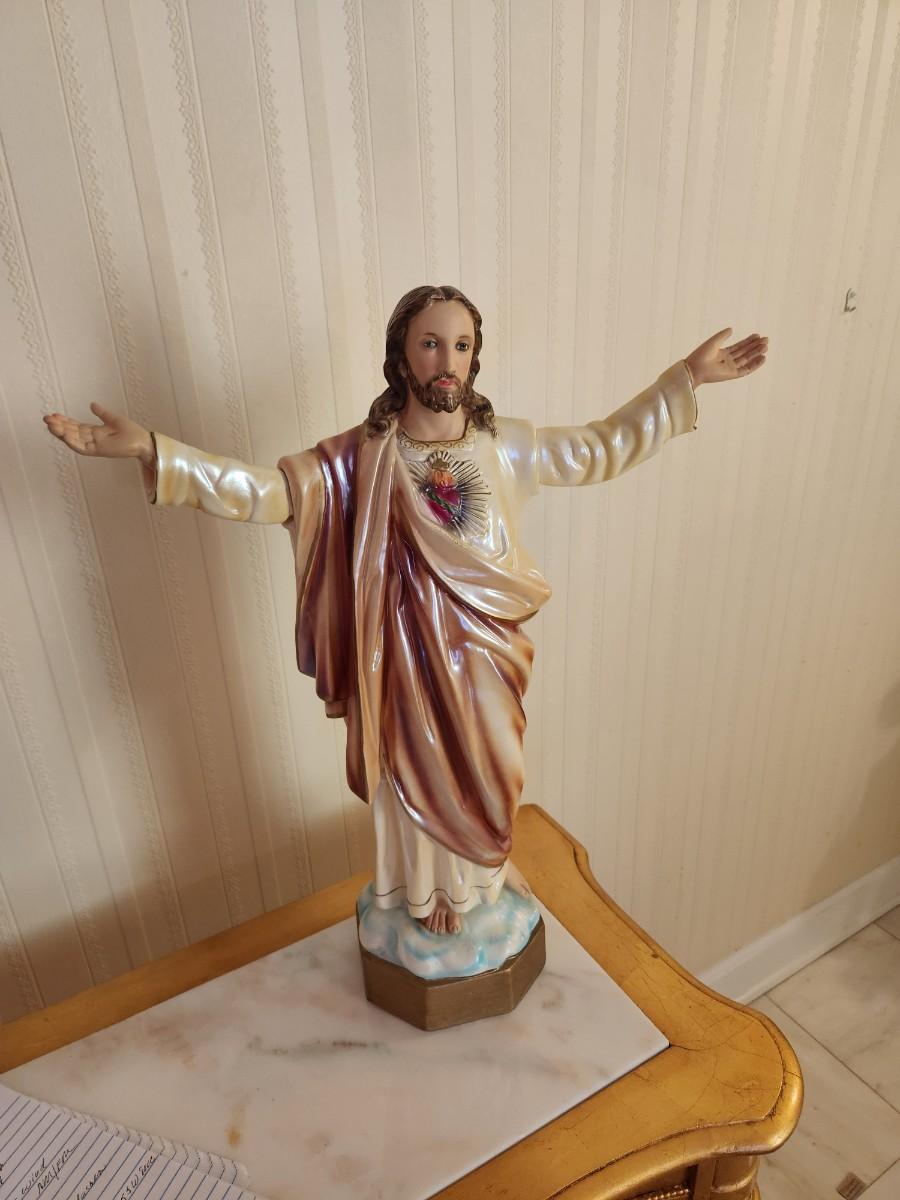 Lot #73 Unusual Vintage Columba Sacred Heart of Jesus Statue - removeable arms