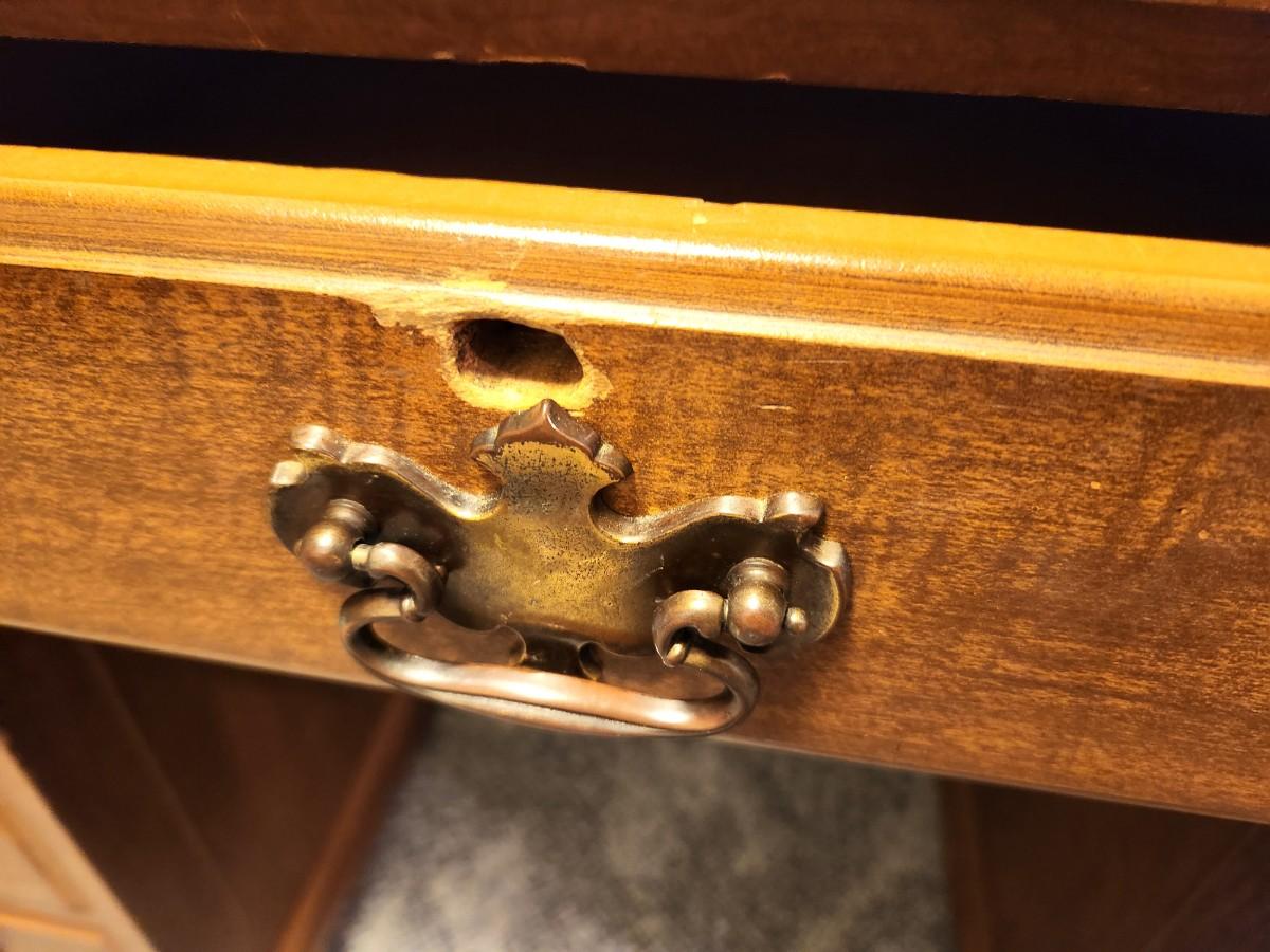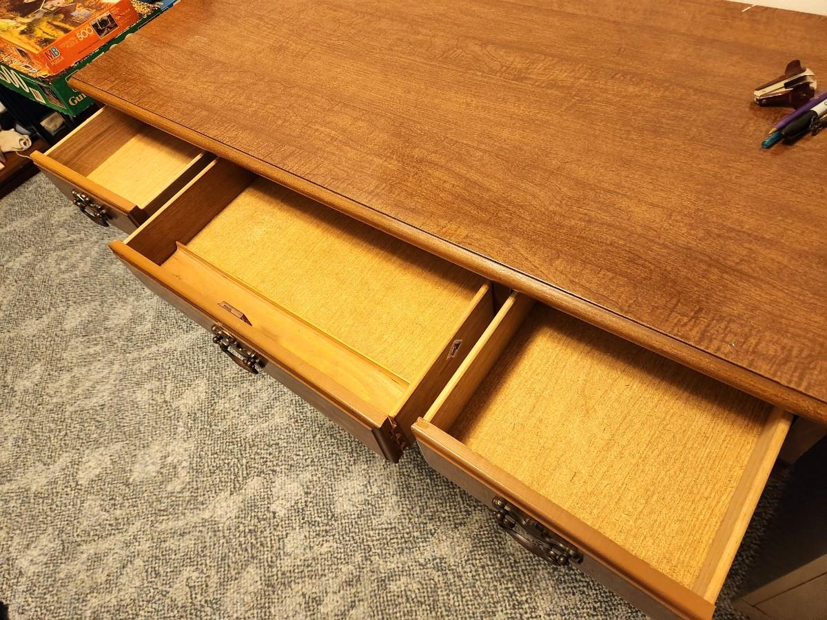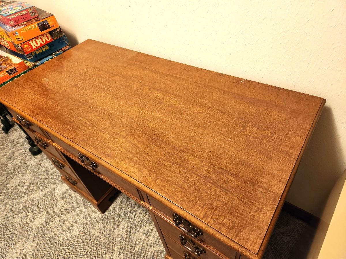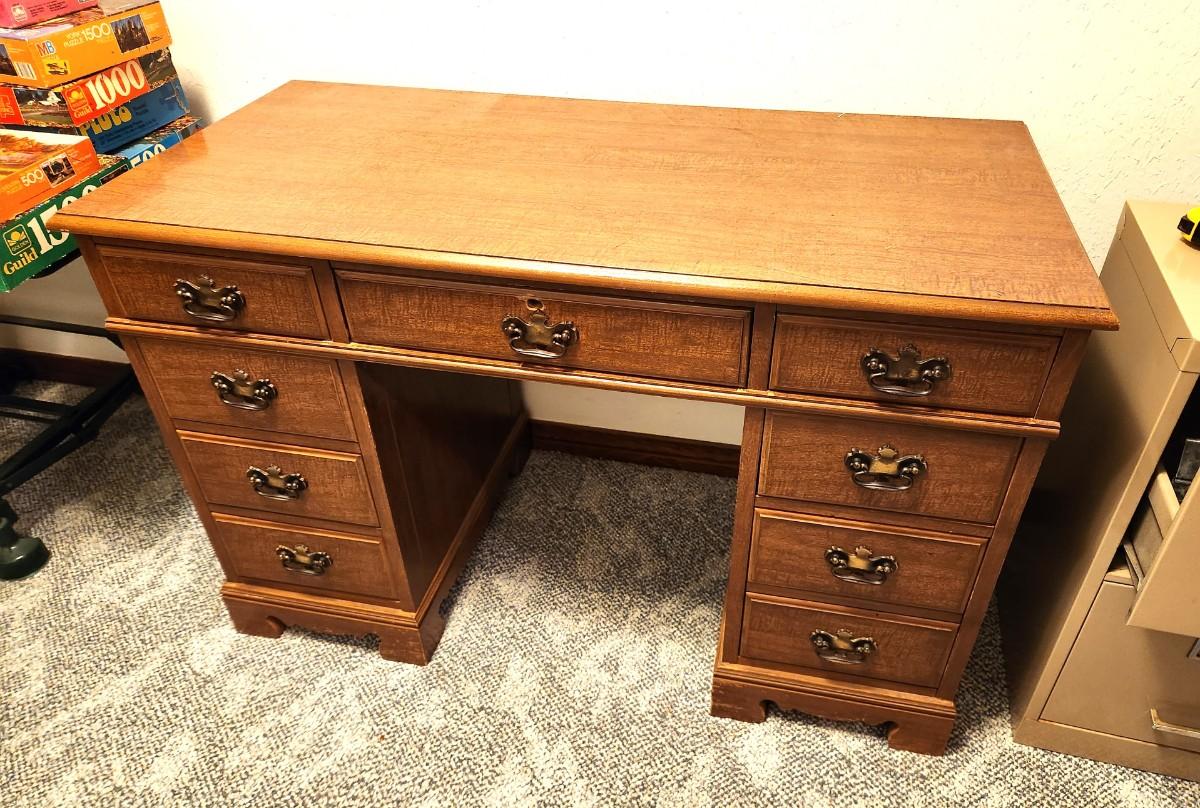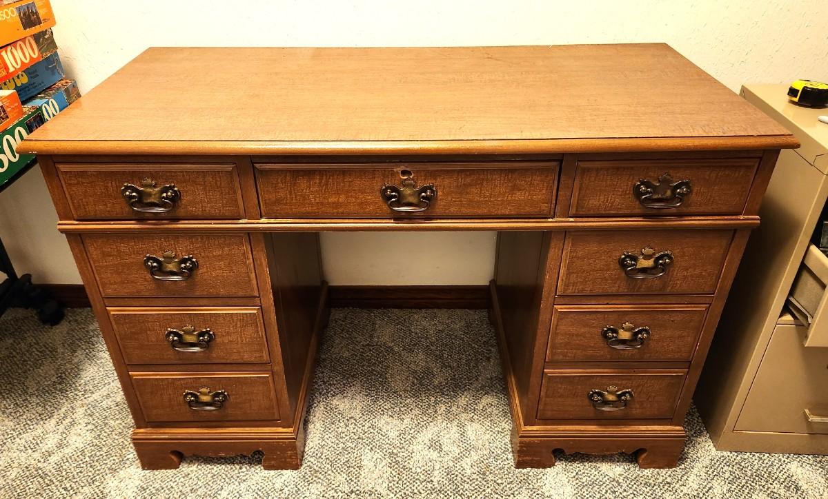 Lot #73  Vintage Kneehole Desk - 9 drawers