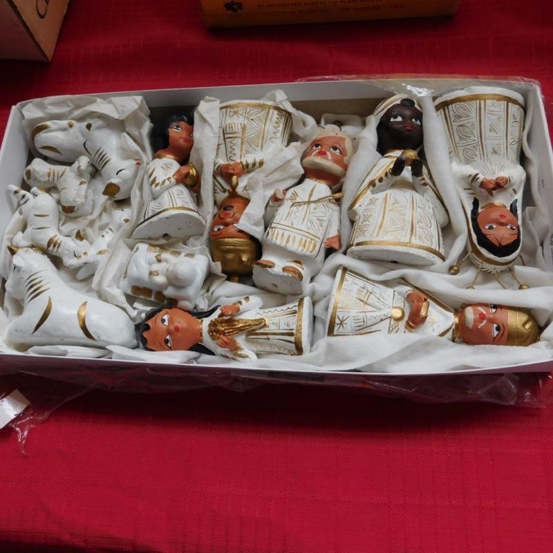 Lot 73 vintage Mexican white and gold 13 piece the Nativity set