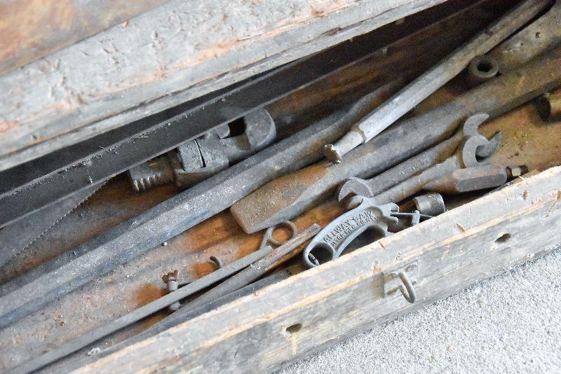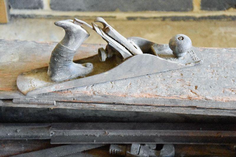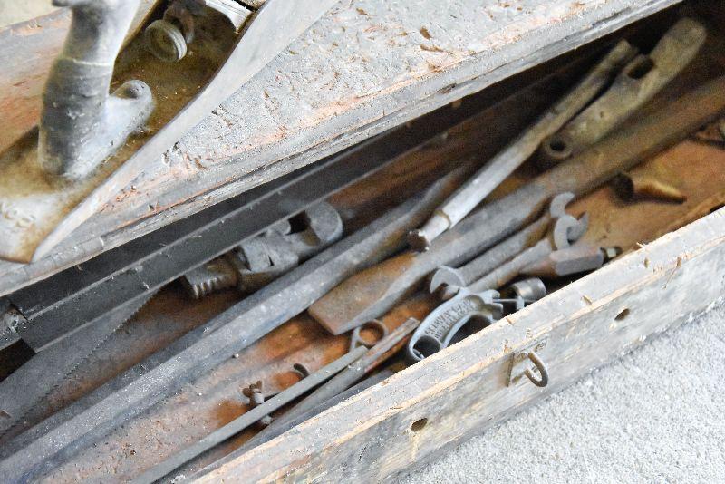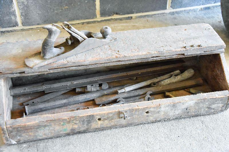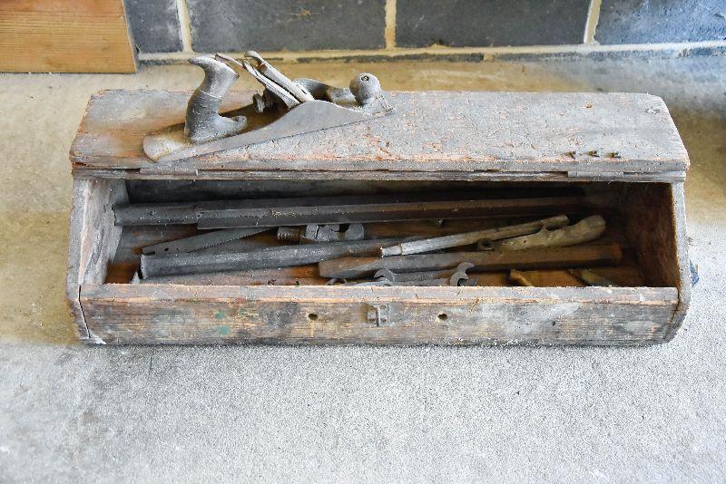 Collection of vintage tools including Bailey Plane. All are in rough shape, but nice box!